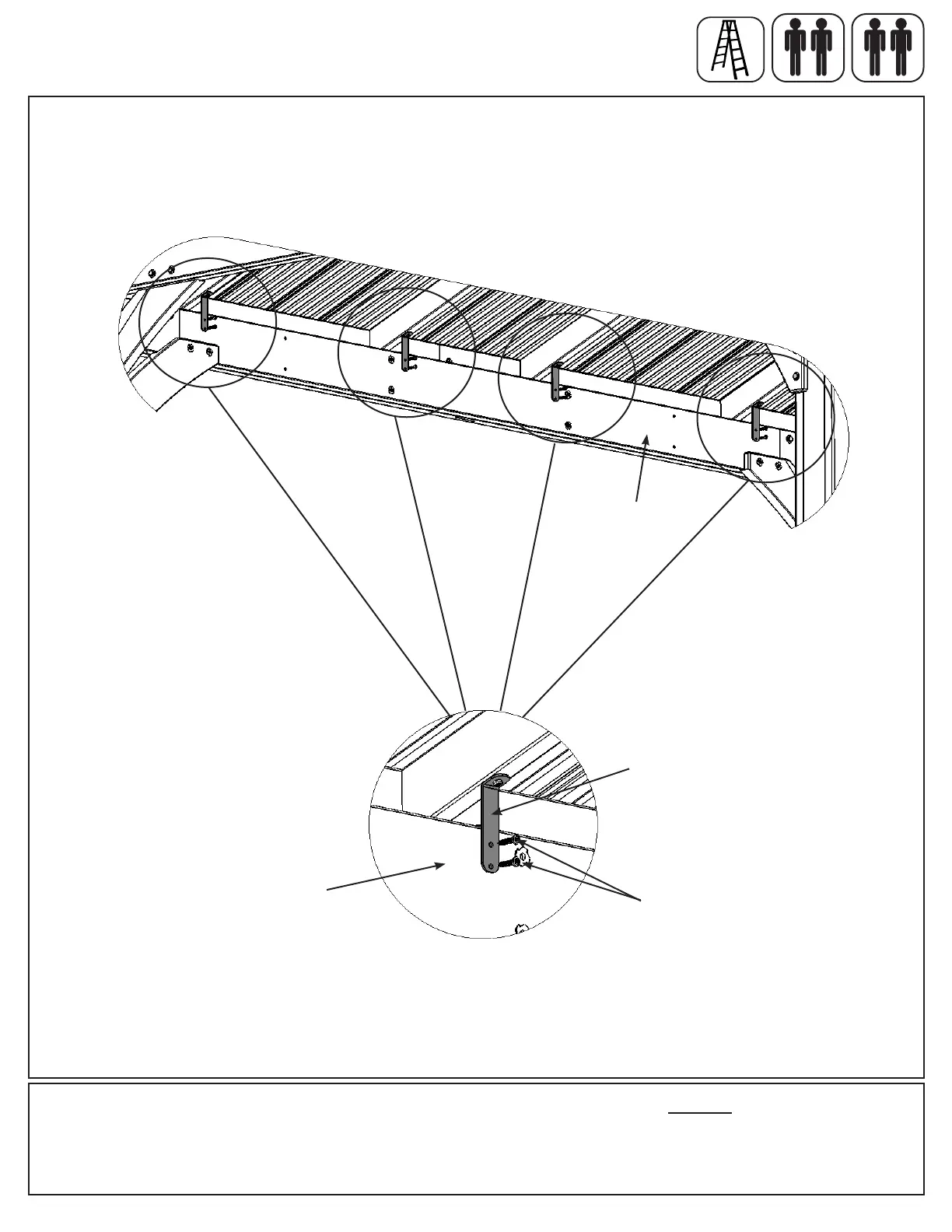A: From inside the assembly attach Roof to Beam Brackets to Beam Assemblies with two #12 x 1-1/2” Pan