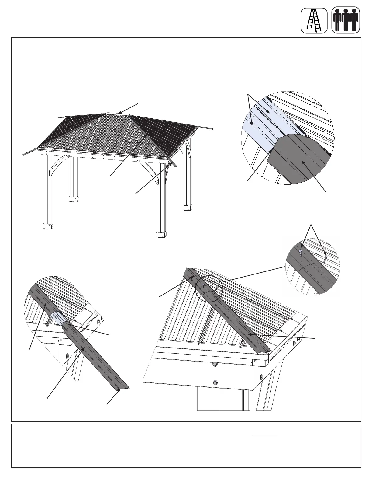 under Peak Cap Long. Attach with two #8 x 3/4” Sheet Metal Screws per Ridge Cap set. (g. 24.1, 24.2, 24.3,