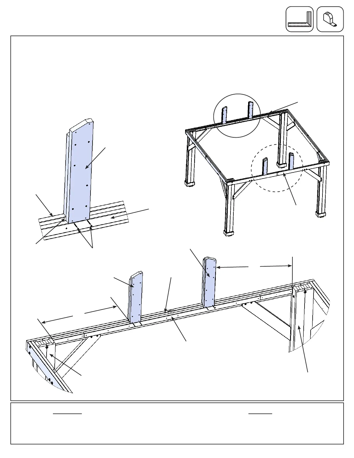 E: From the inside of the pavalion frame measure 41” from Post Assembly on the left then place one (553)