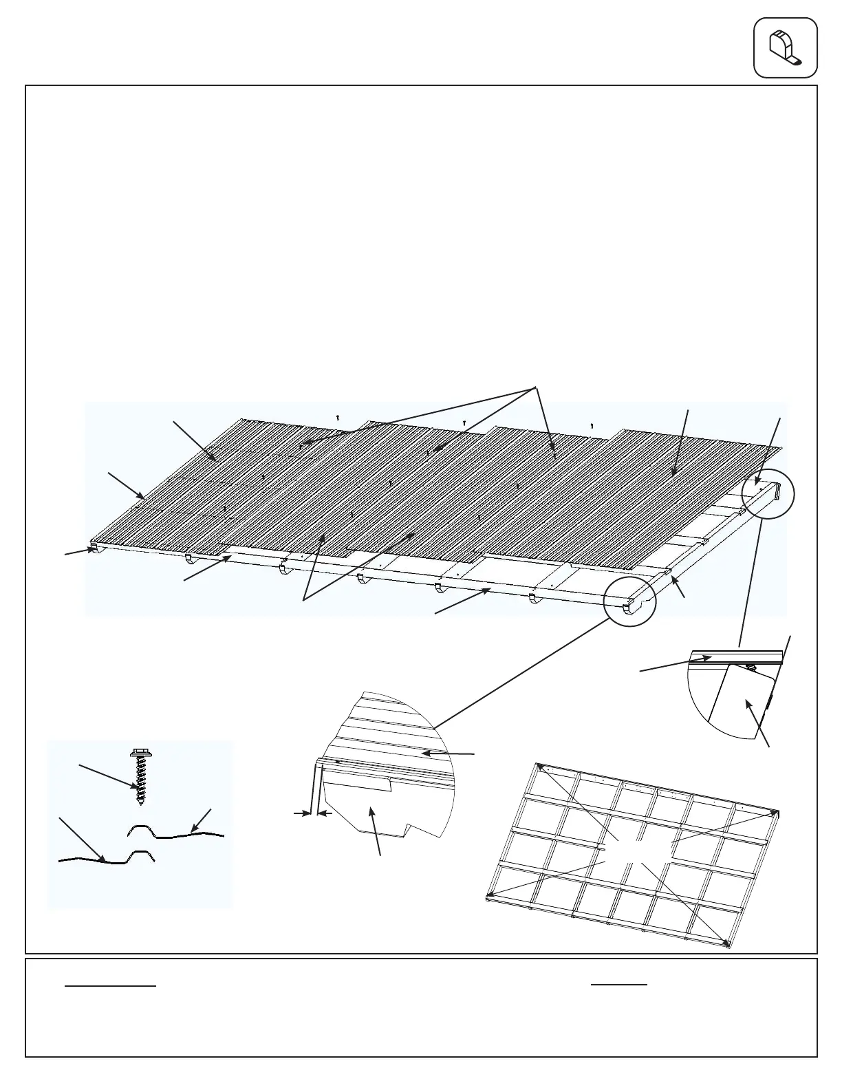 C: Attach all four Panels to Roof Panel Frame using twelve #8 x 1” Hex Roong Screws in locations shown in