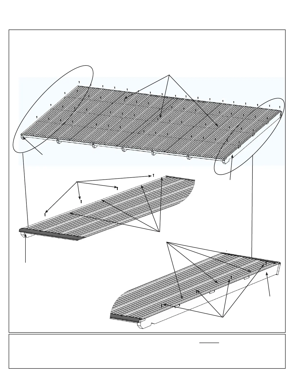 F: Attach the three Main Panels and one Right Side Panel to one Roof Panel Frame using 63 #8 x 1” Hex