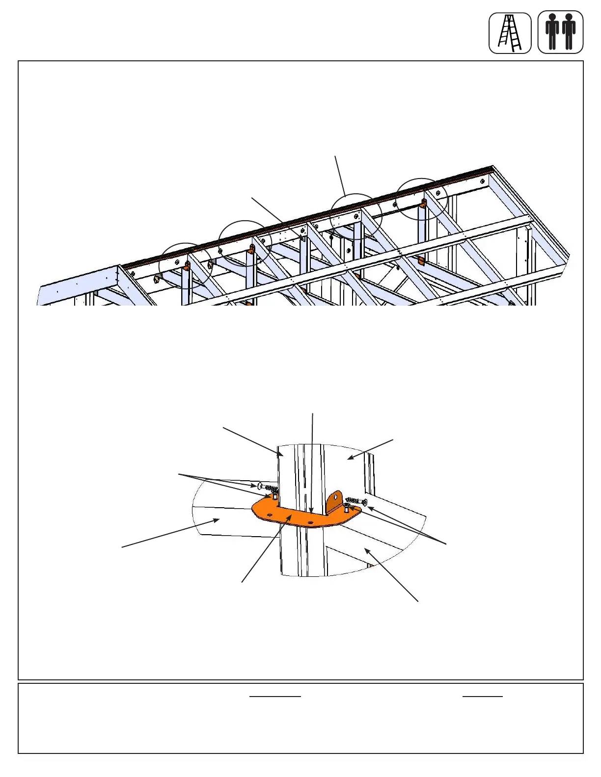 C: Attach one Tie Centre Bracket to the peak of ve rafters, (541) Ridge Long, (542) Ridge Short with four #8