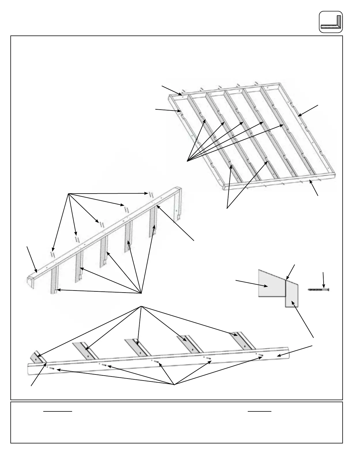 Fascia to rafters with one #8 x 2-1/2” Wood Screw per rafter. Repeat for second Large Roof Assembly. (F18.5,
