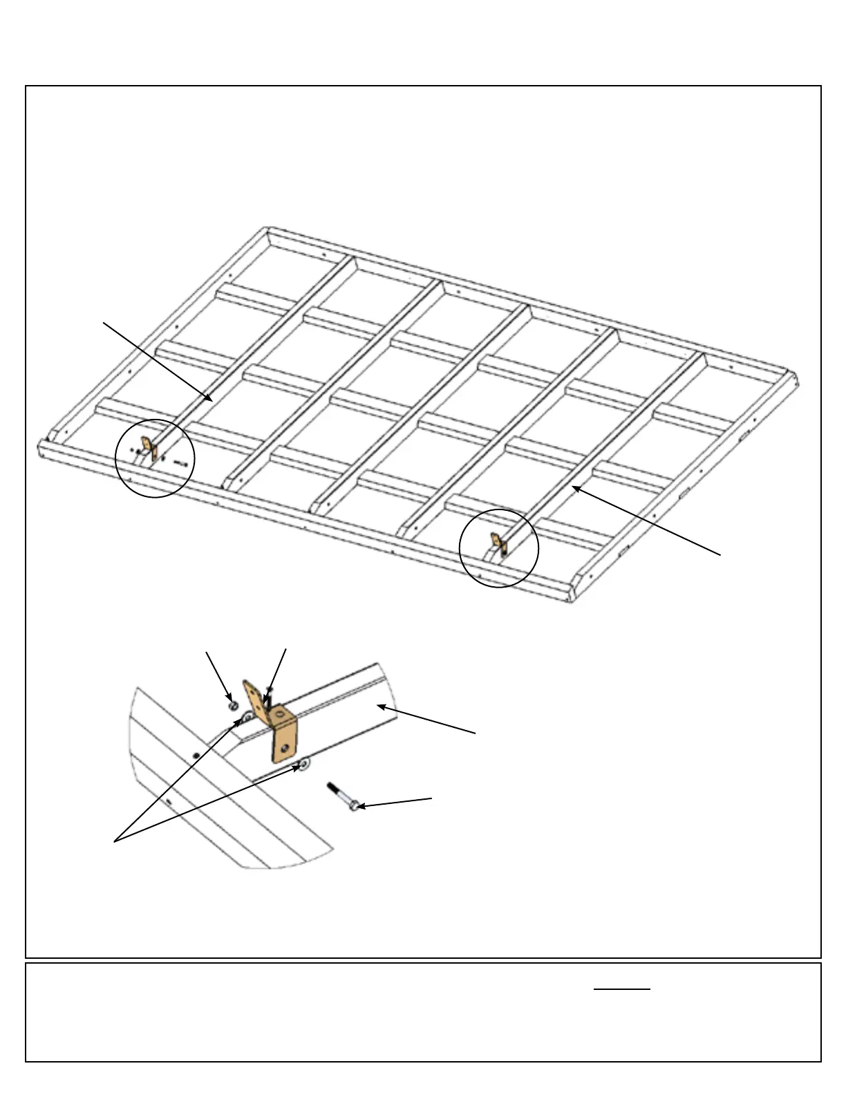 Roof to Beam Bracket to the two outside (633) Centre Rafters with one 1/4 x 2” Hex Bolt (with two 1/4-5/16” large