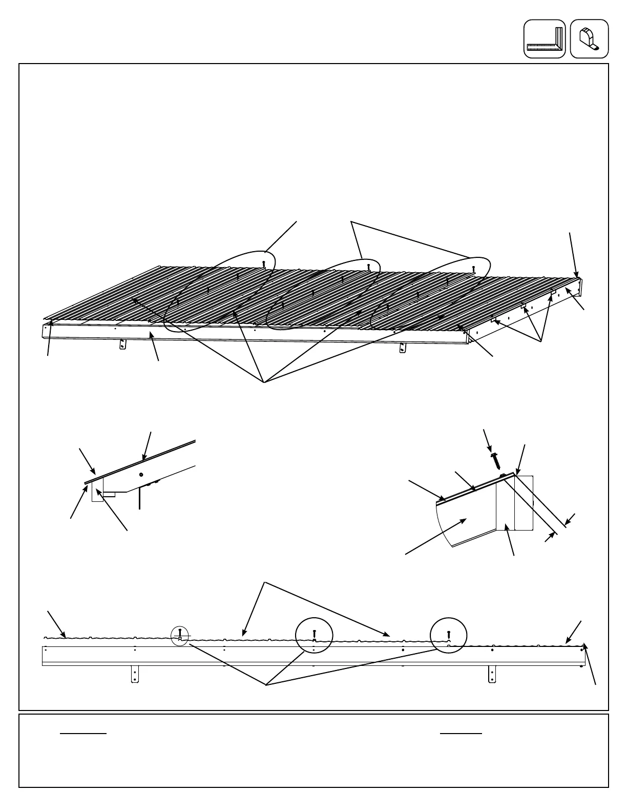 A: Turn over Large Roof Assemblies, make sure they are still square. Place four Middle Panels ush to the top and