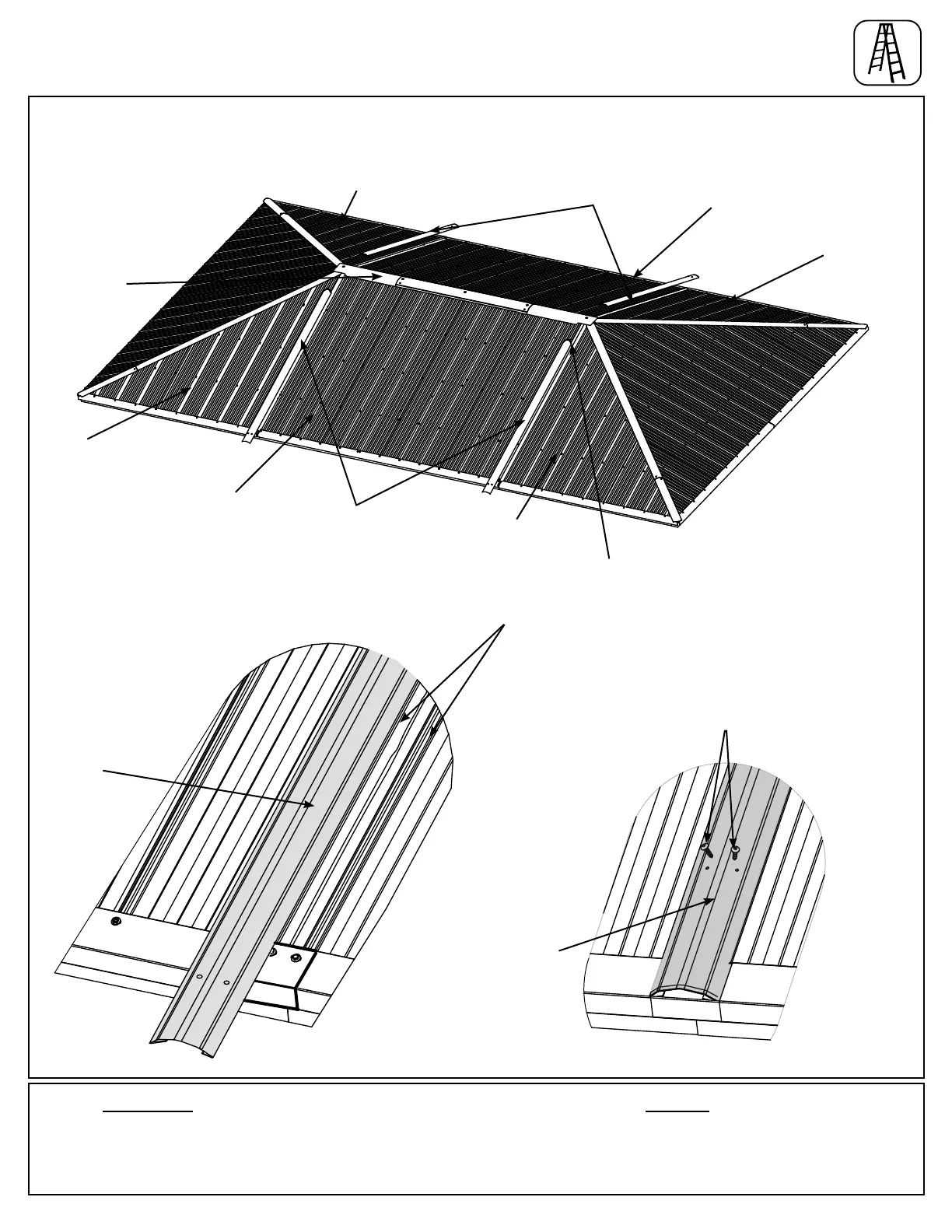 E: At each Corner Roof Assembly and Large Roof Assembly connection, slide one Ridge Cap Middle over the