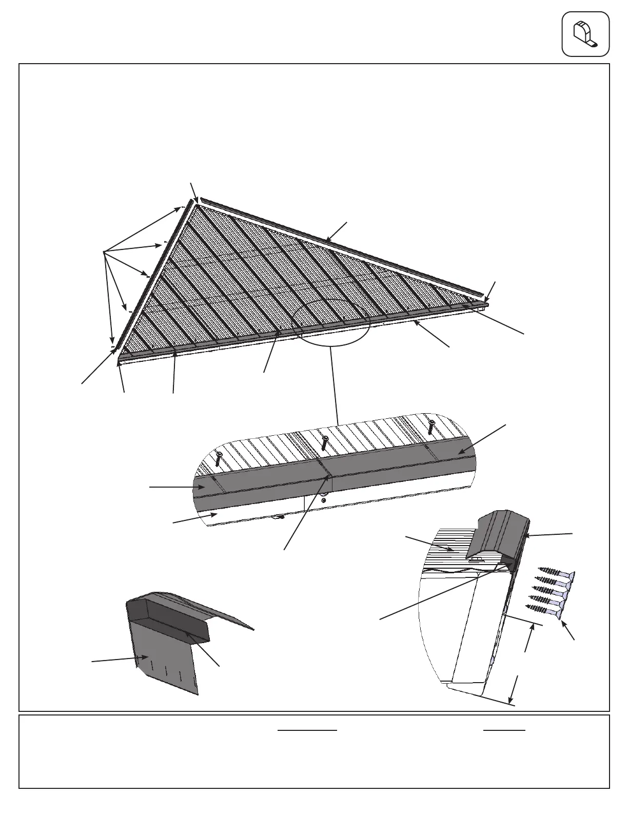 Attach both Roof Edges with 17 #8 x 1” Roong Screws per Small Roof Rafter assembly. (F13.1 and F13.2)