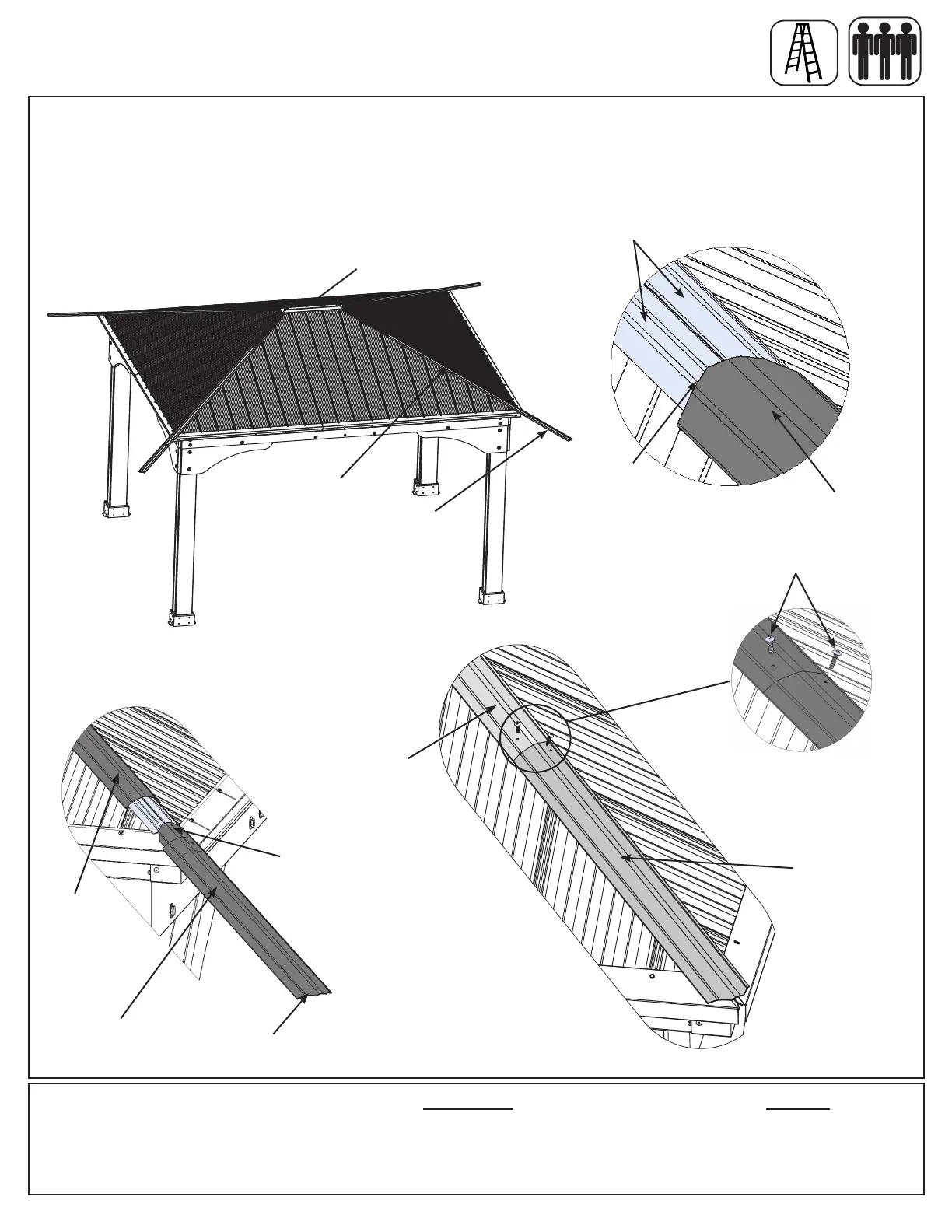 under Peak Cap Long. Attach with two #8 x 3/4” Sheet Metal Screws per Ridge Cap set. (F24.1, F24.2, F24.3,