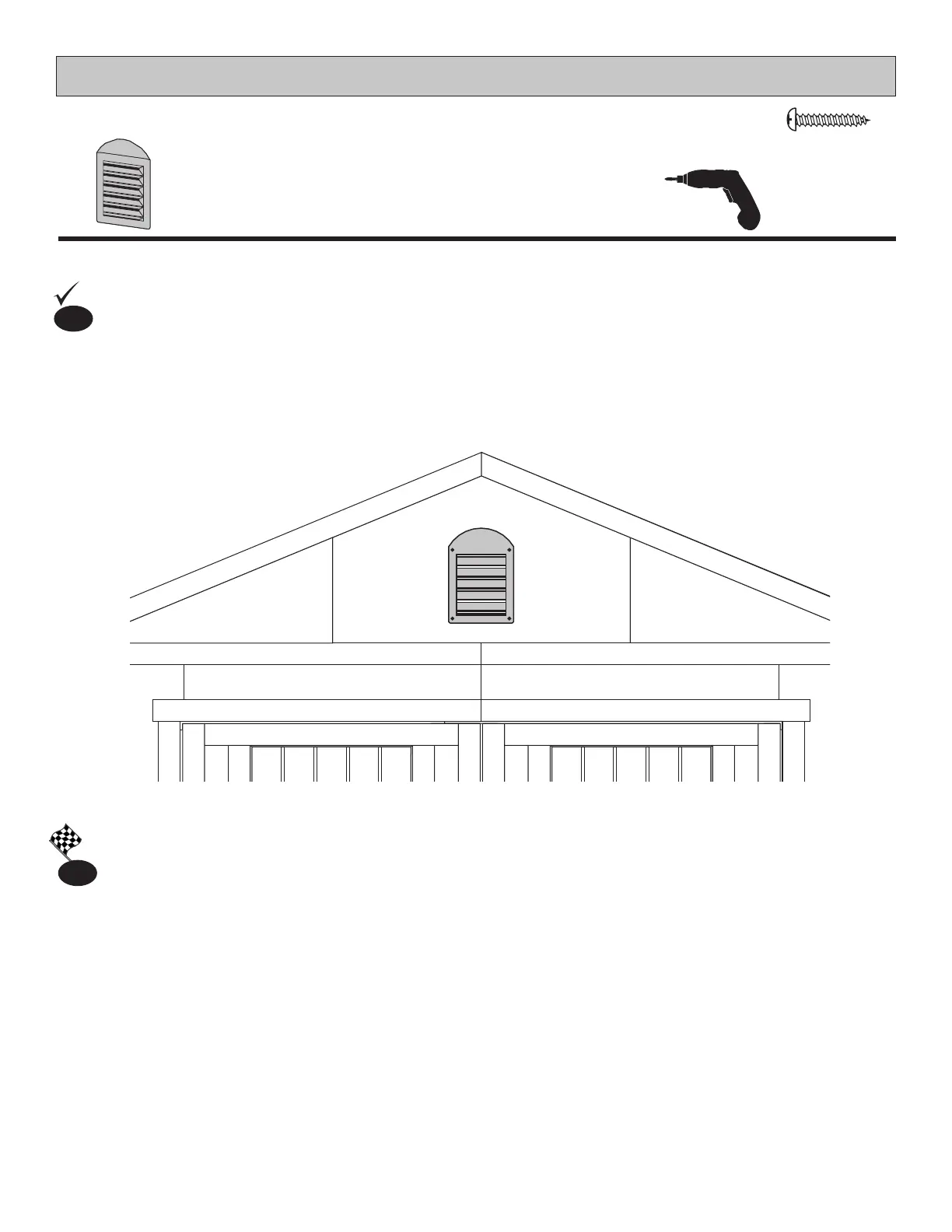 Position VENTS in front and back gables as shown and secure using 1" screws.