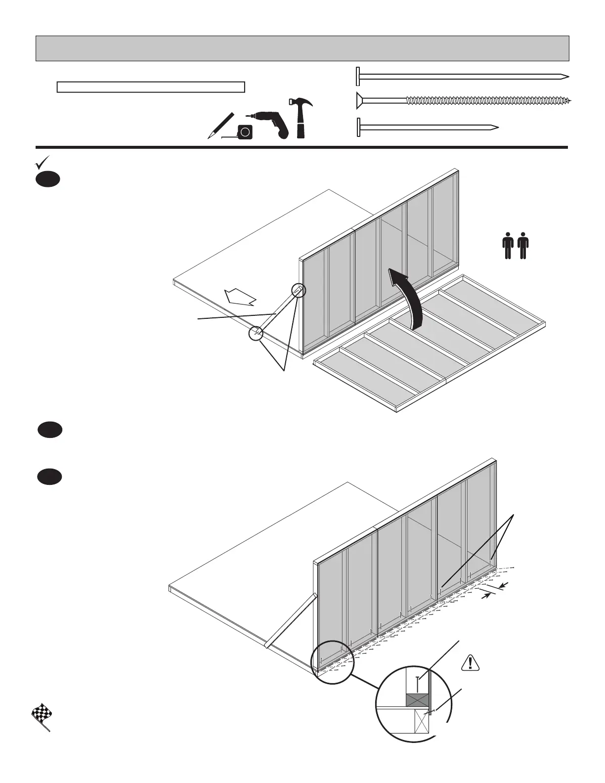 Secure lower edge of panel to oor frame with 2" nails spaced 6" apart.