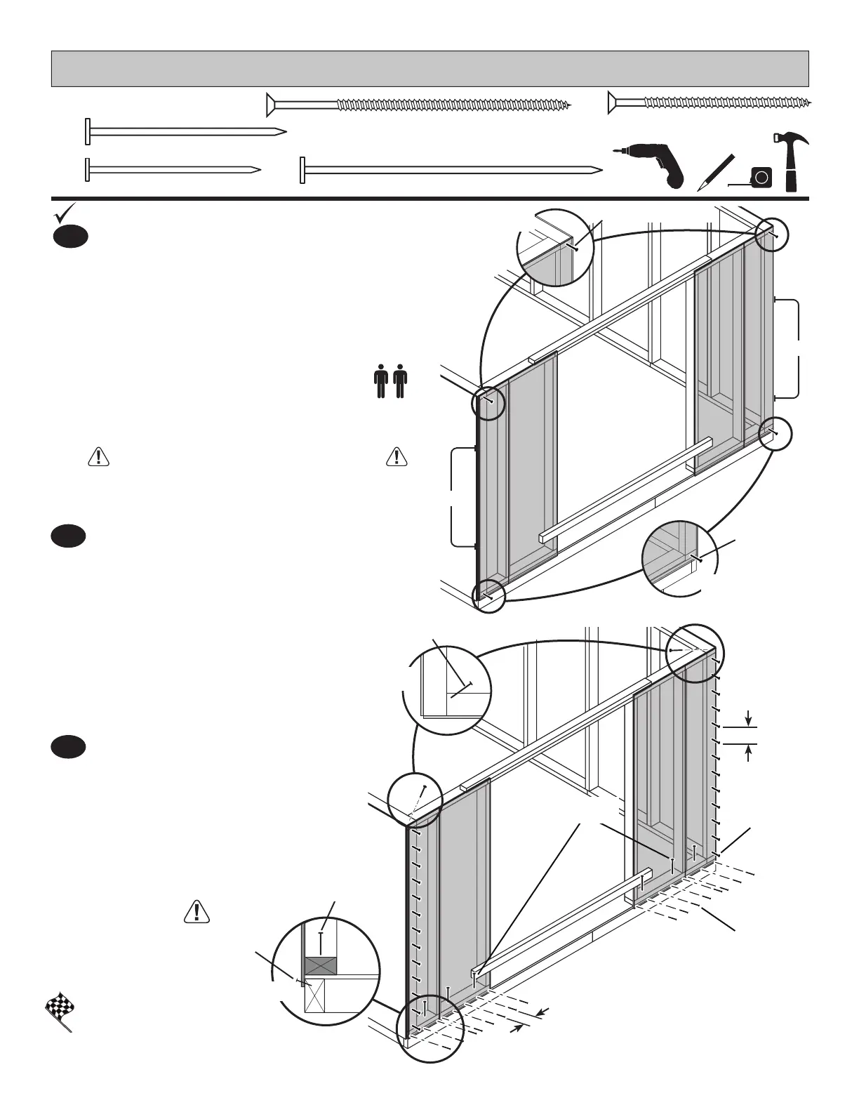 Secure wall to bottom plate fi rst.