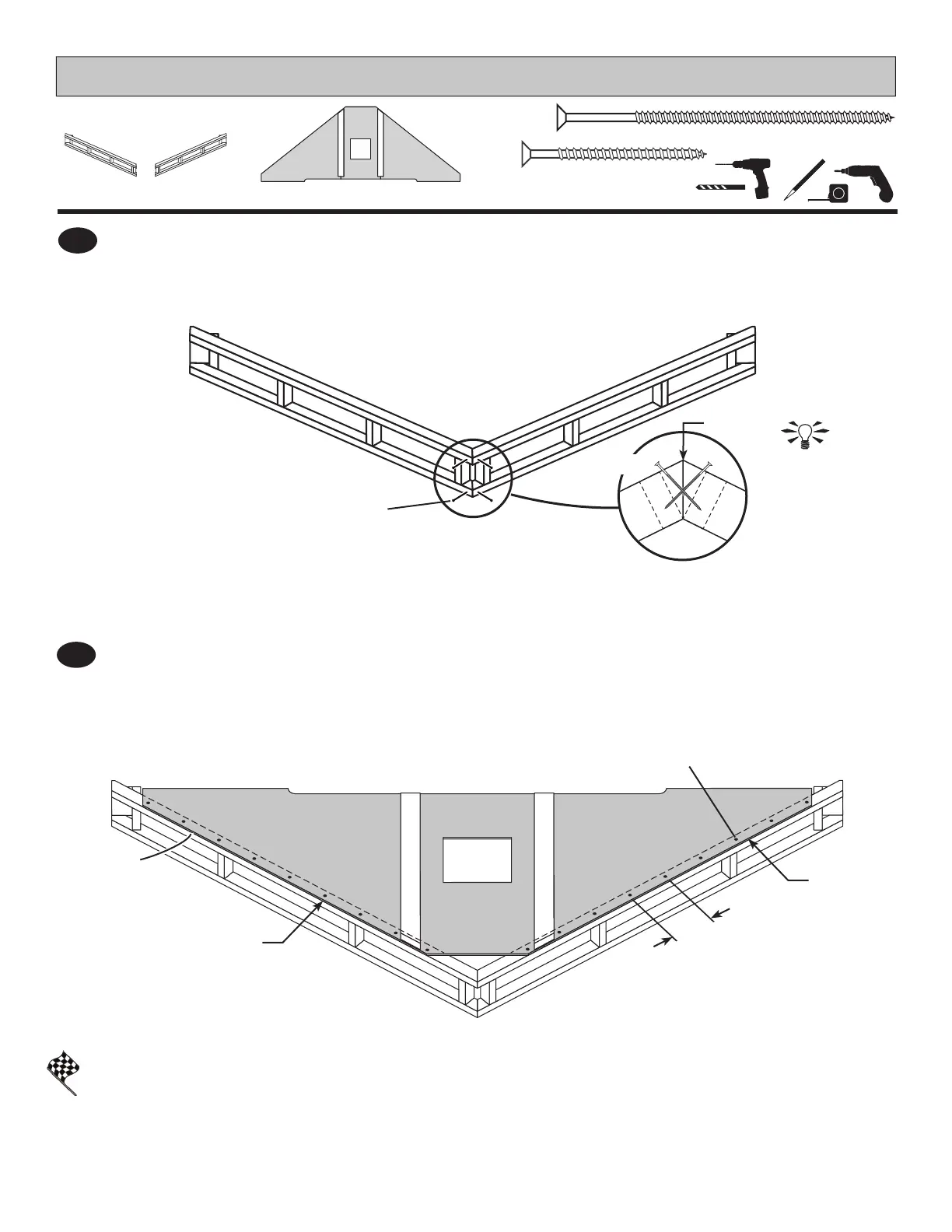 To complete gable ladder, connect (2) ladder assemblies together with (4) 3" screws .