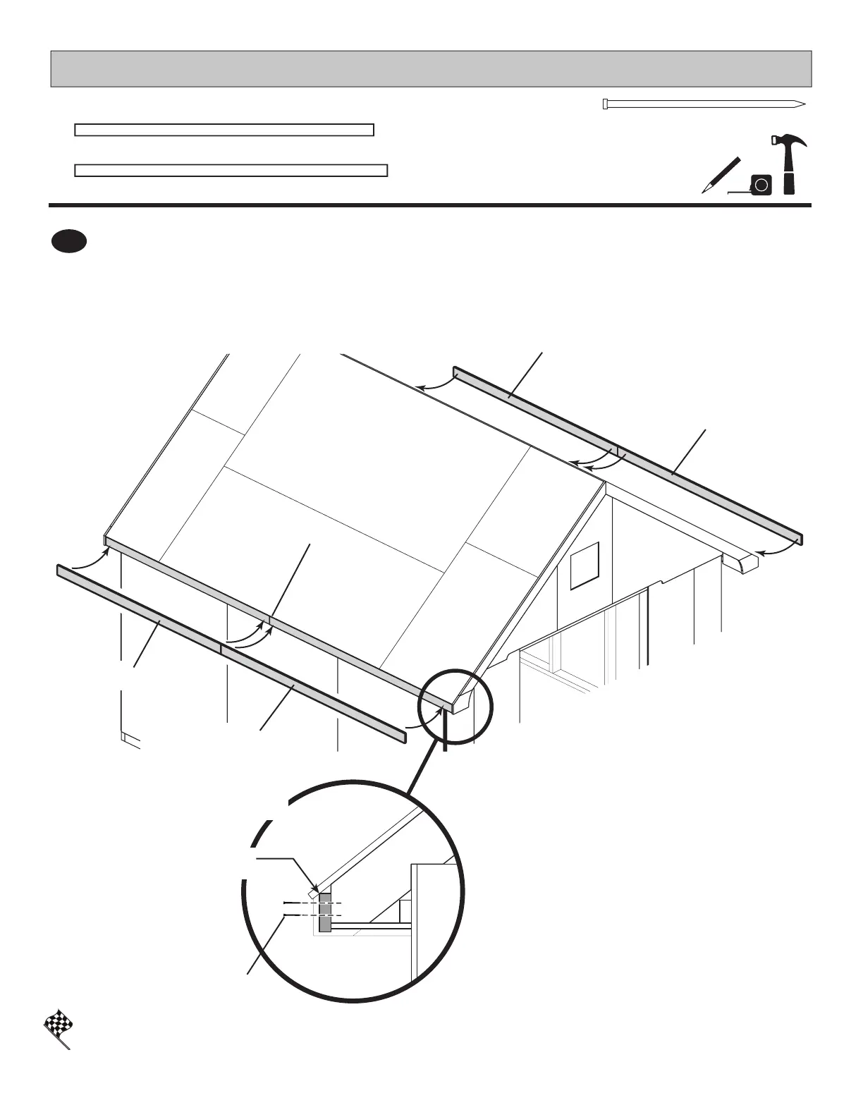 Secure with (2) 2" nish nails at each rafter and (4) 2" nish nails at seam.
