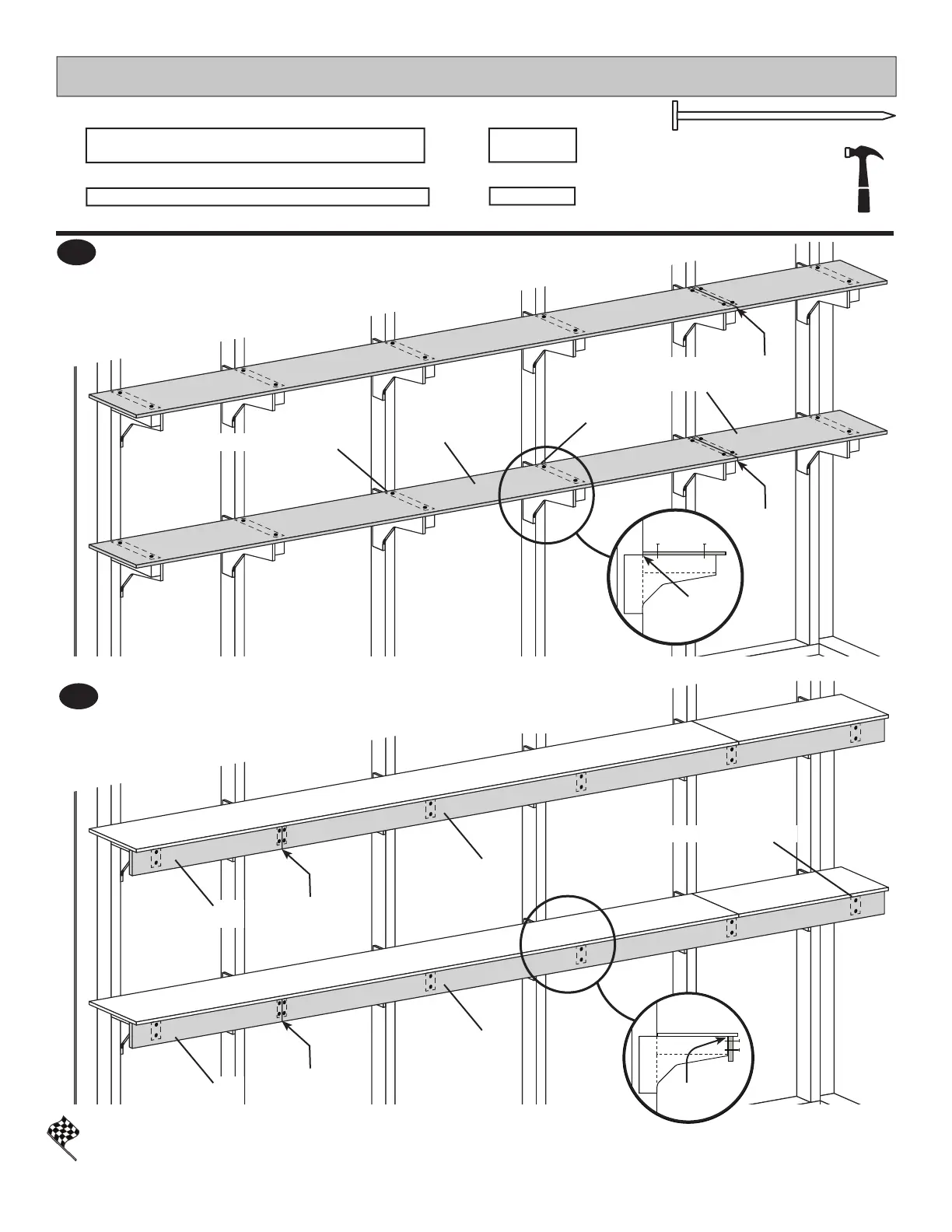 Install shelf panels centered over shelf supports.