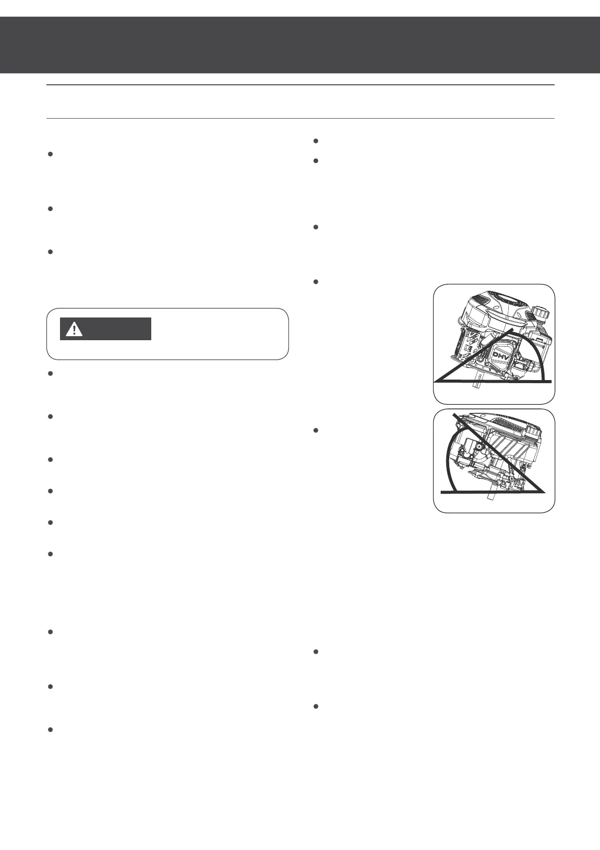 Refuel the fuel tank not too full so as to avoid fuel’s spilling out.