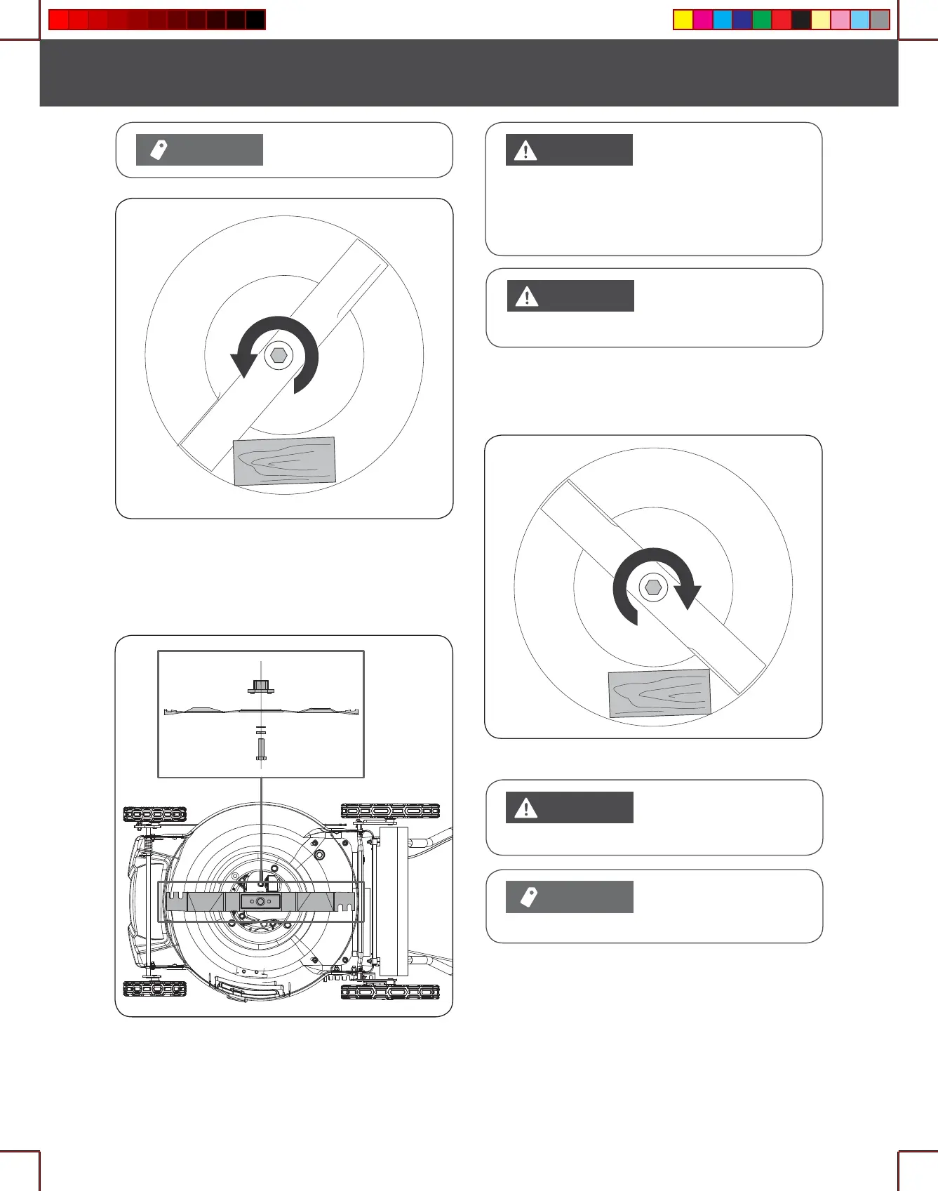 lawn mower housing and tighten the blade bolt, turning clockwise.