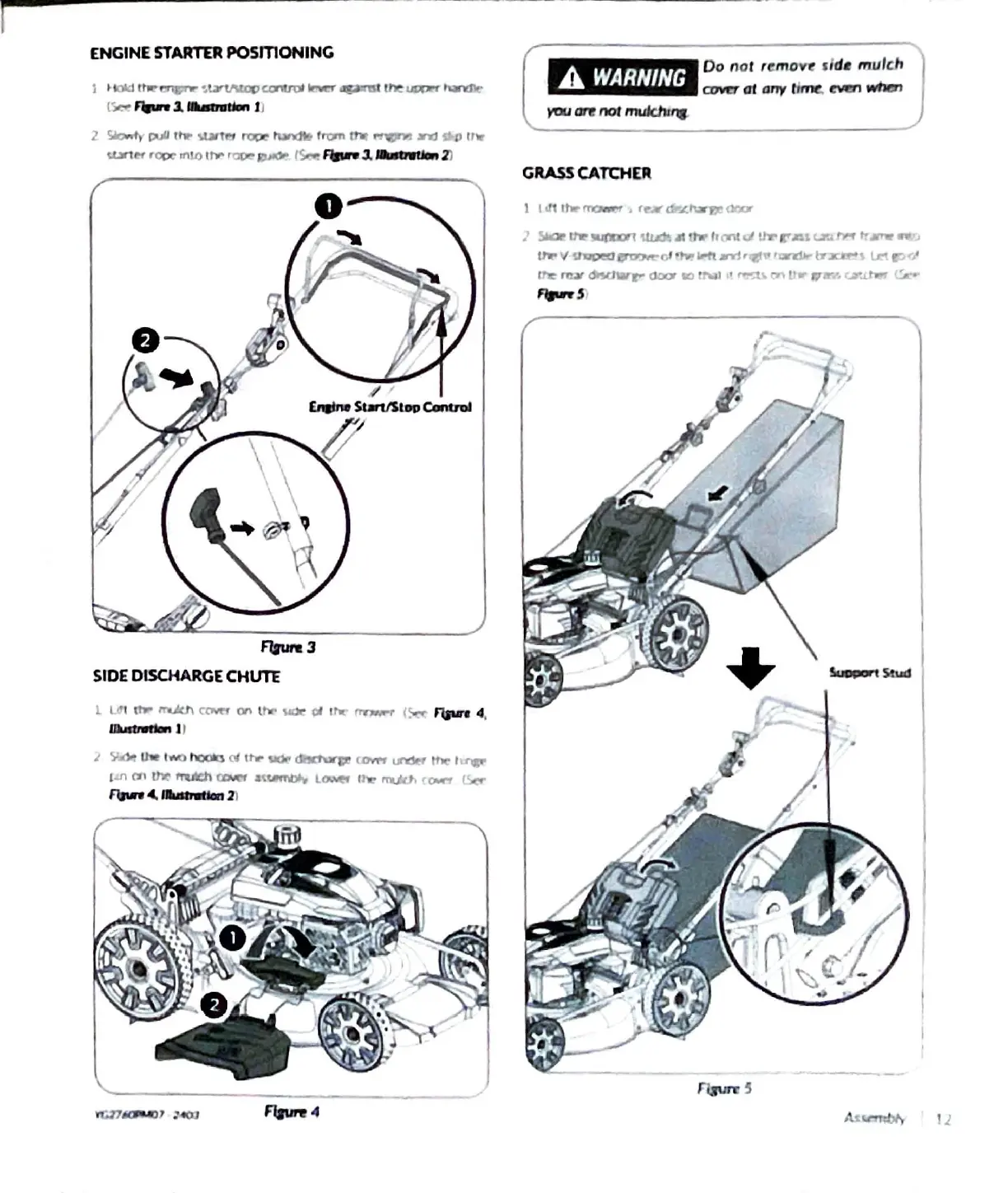 YARDMAX YG2760 - Engine Starter Positioning; Side Discharge Chute; Grass Catcher