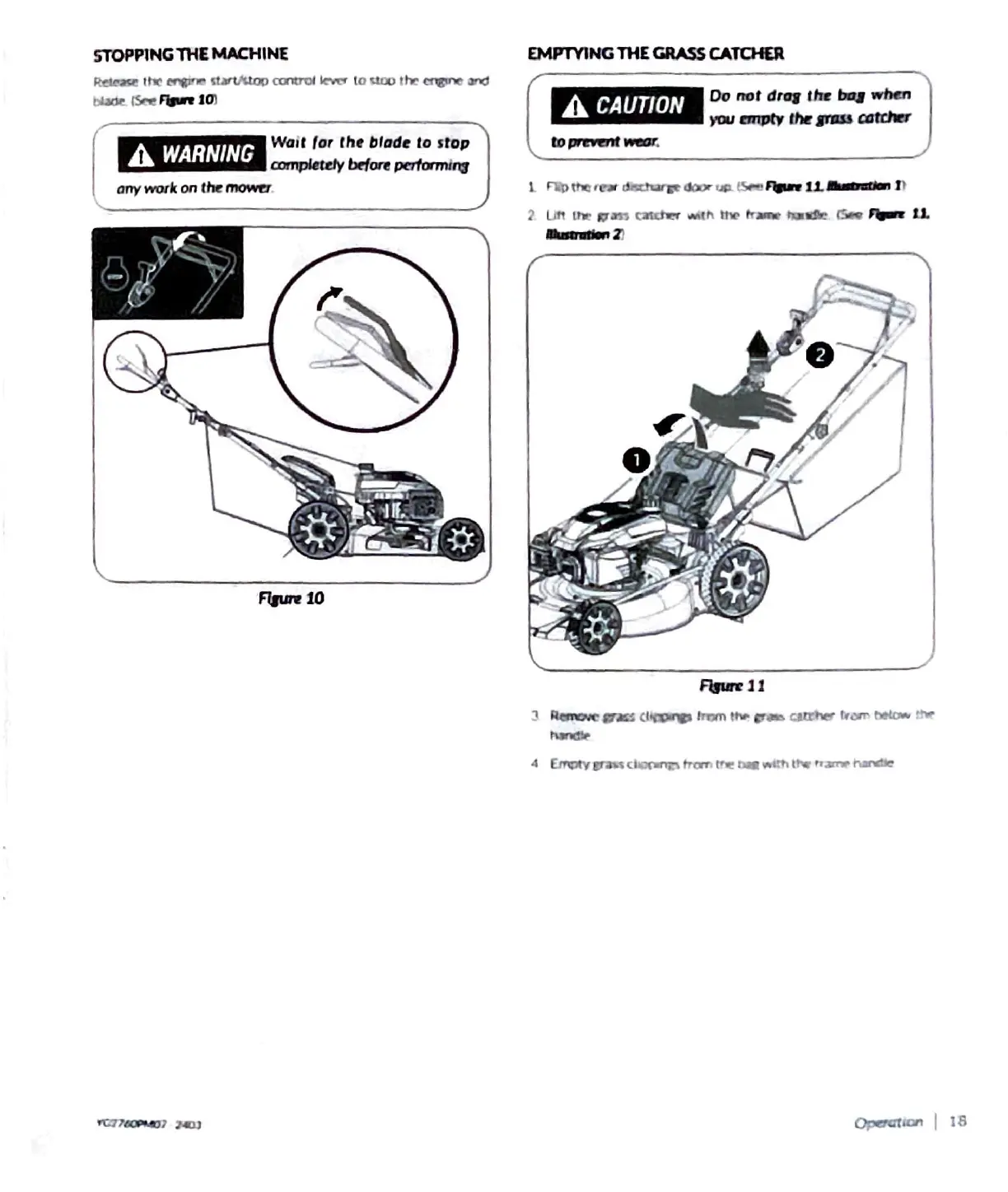 YARDMAX YG2760 - Stopping the Machine; Emptying the Grass Catcher