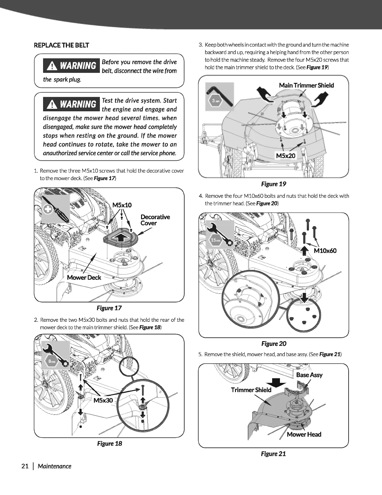 Remove the shield, mower head, and