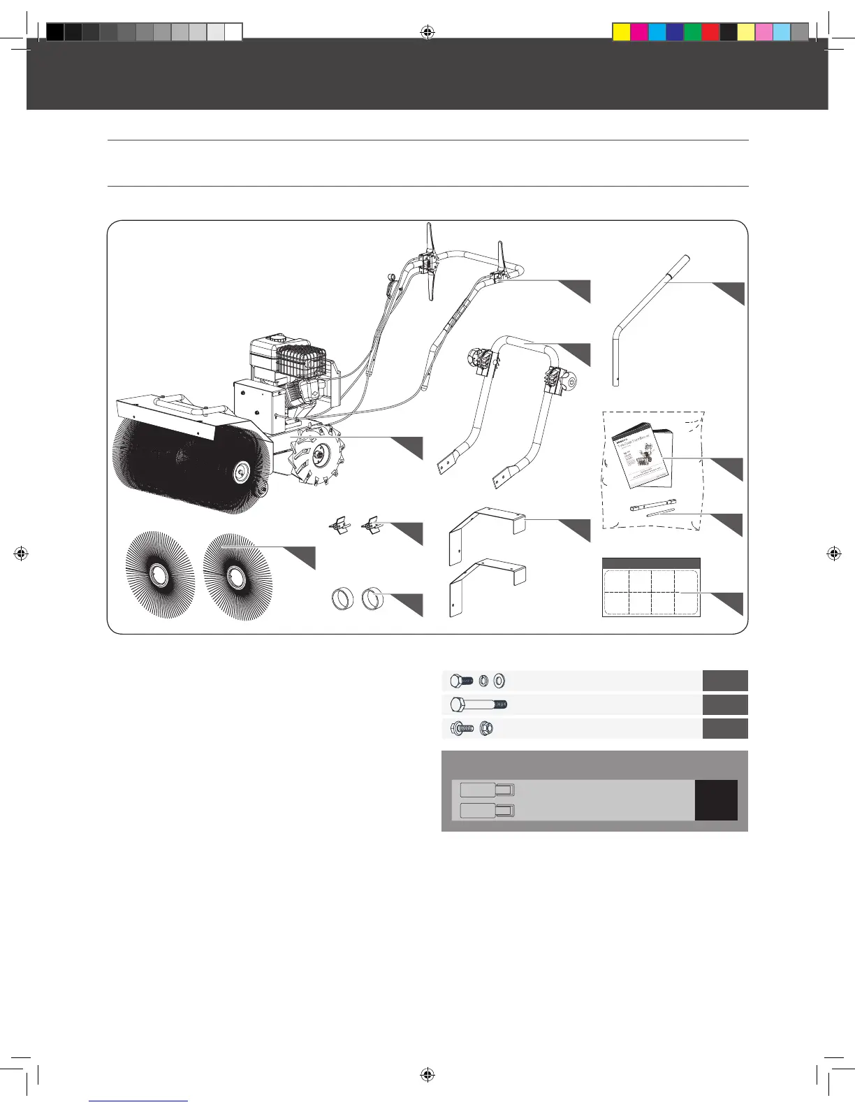 Your YARDMAX power sweeper comes partially assembled and contains the following: