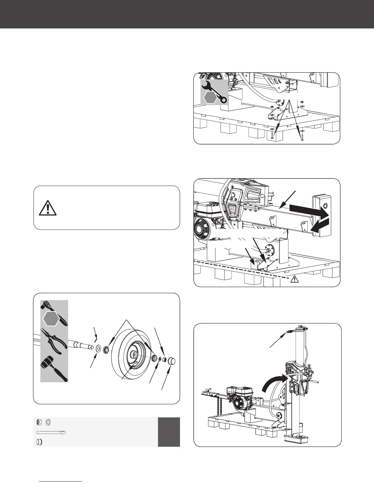 axle and the other roller bearing, then put the wheel washer