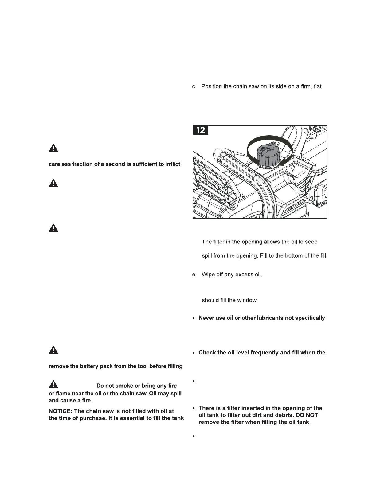 with oil before use. Operating the chain saw with-