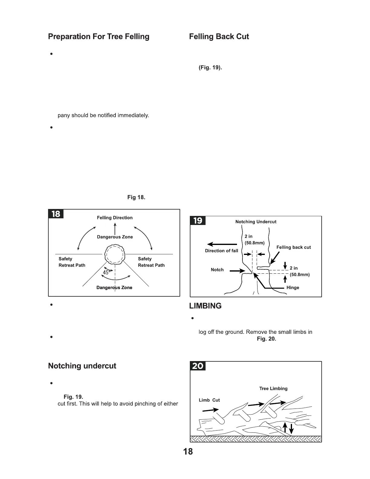 a. Make the felling back cut at least 2 inches (50.8
