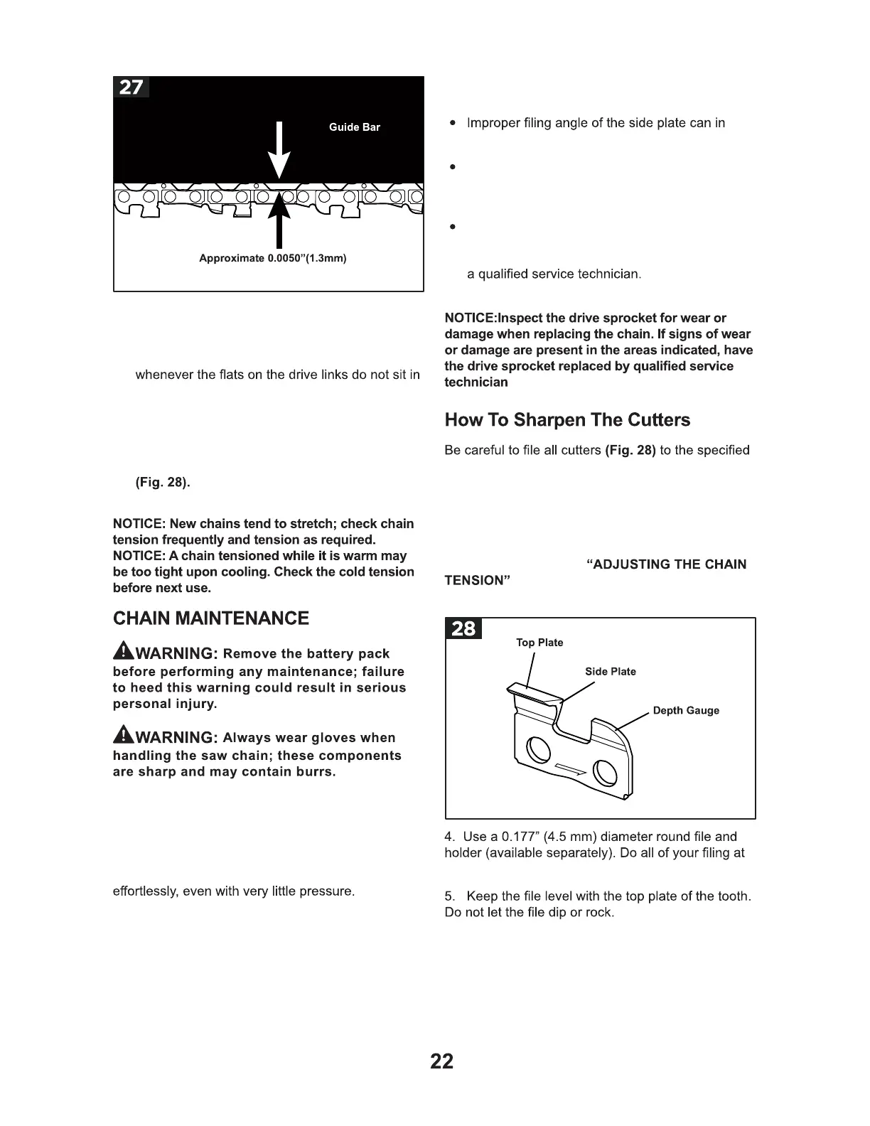 maintained properly. The chain requires sharpen-