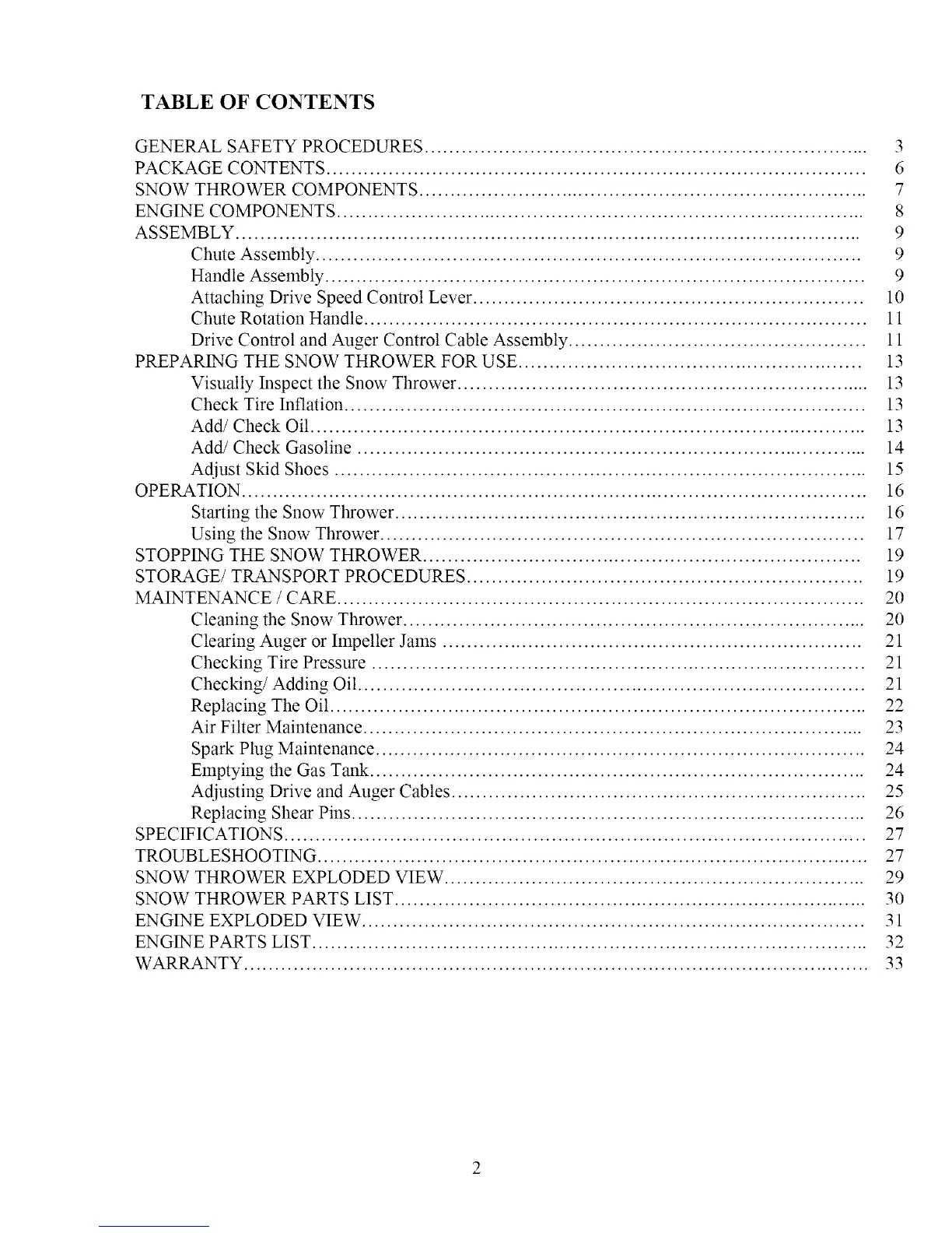 SNOW THROWER PARTS LIST ............................................................................. 30