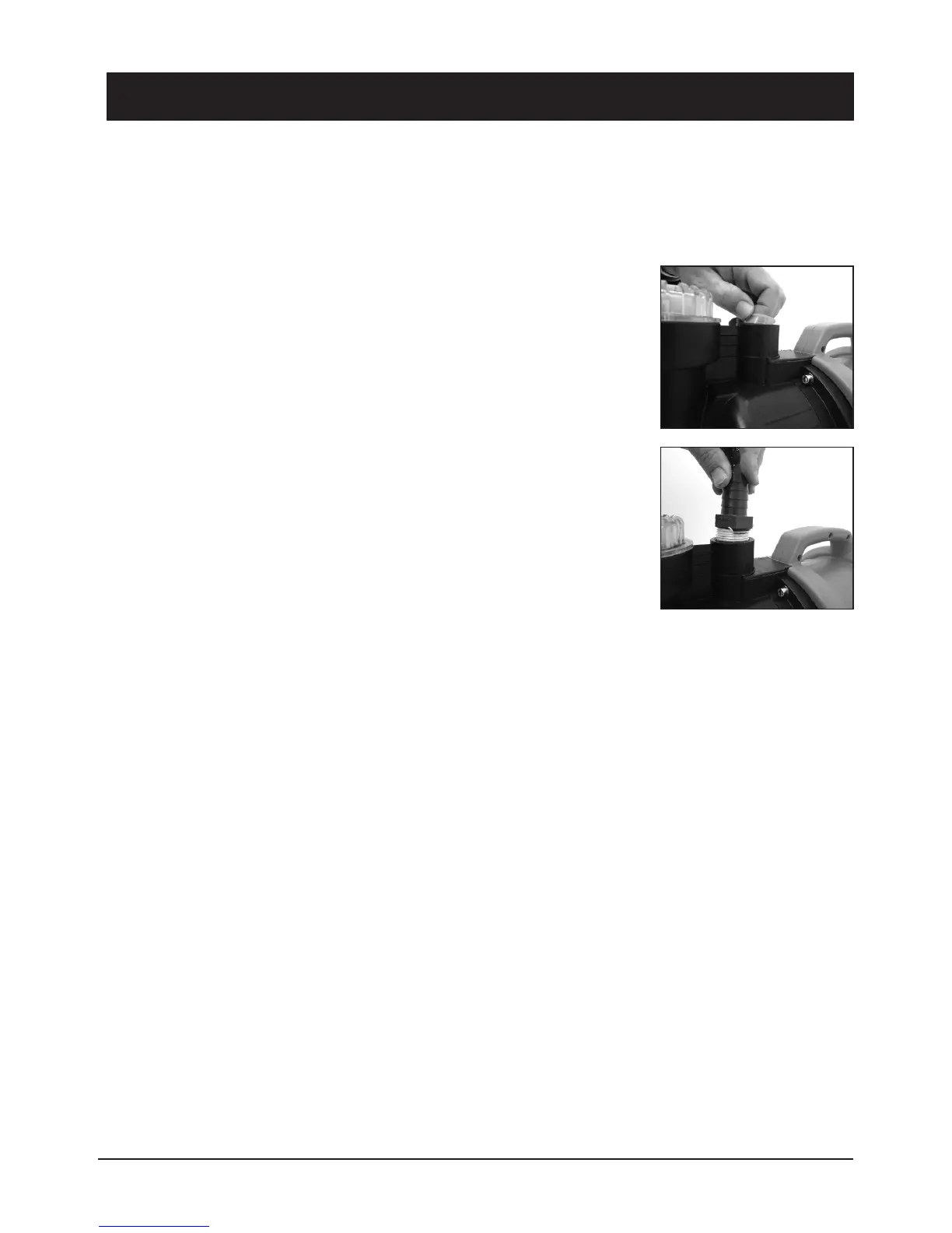 Caution: Only use the supplied 25.4mm ("1") male threaded hose adaptor or an adaptor similar size & dimensions