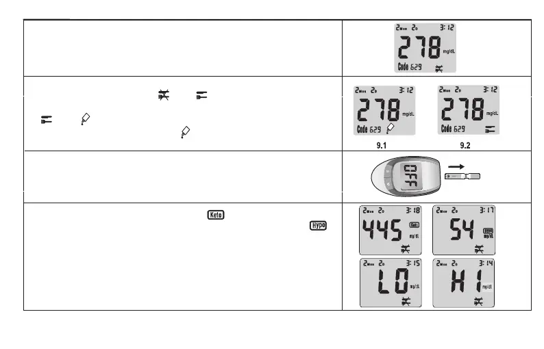 (1.1-33.3mmol/L). If “HI” is displayed, your blood glucose result may