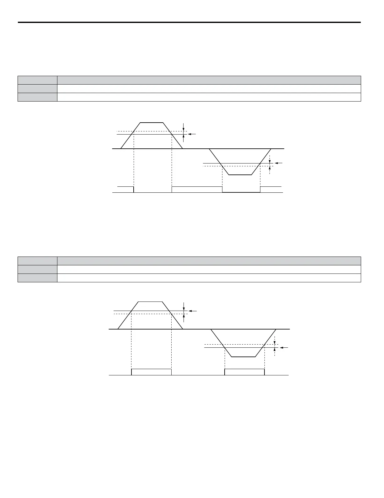 terminal remains closed until the output frequency or motor speed fall below L4-01 minus the setting of L4-02.