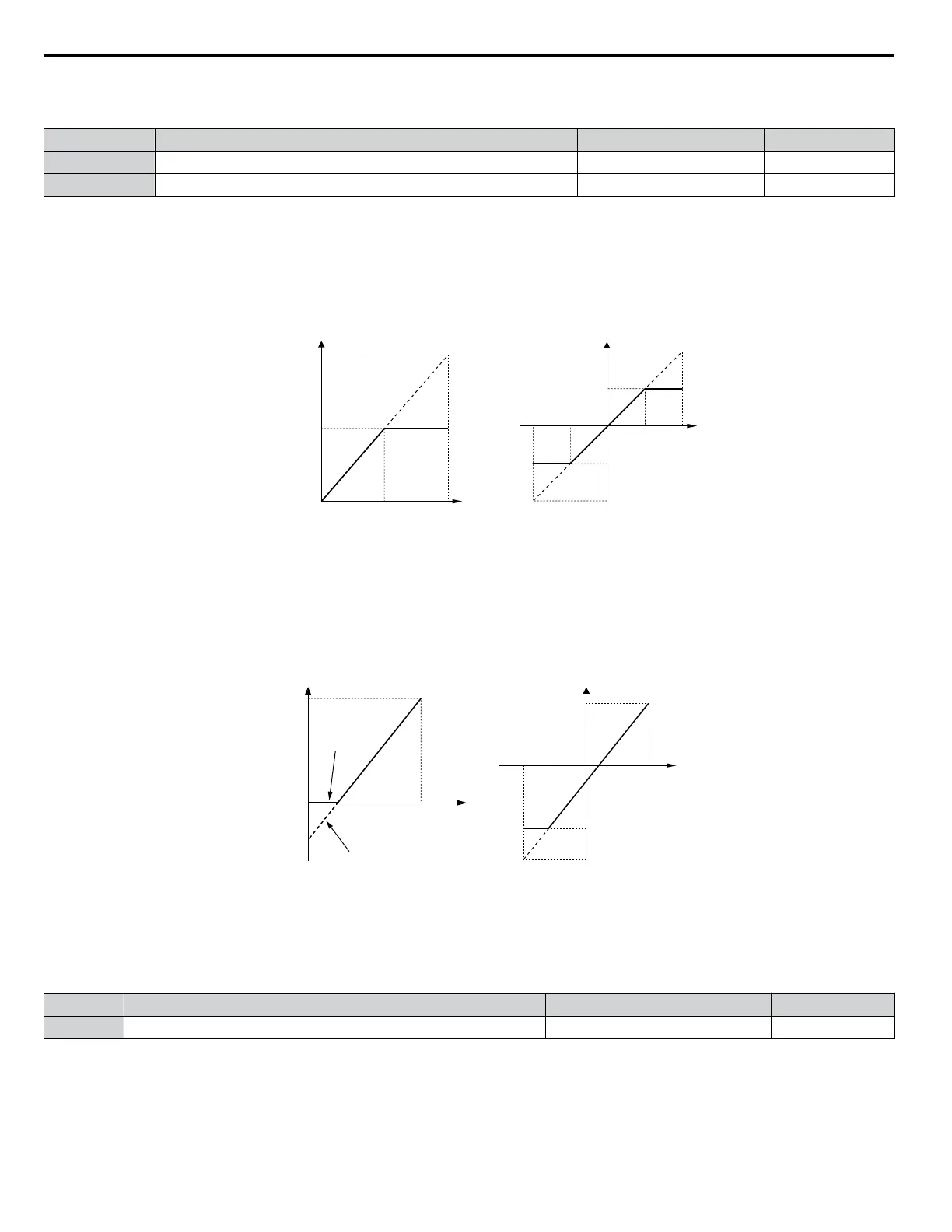 • Gain H3-03 = 200%, bias H3-04 = 0, terminal A1 as frequency reference input (H3-02 = 0):