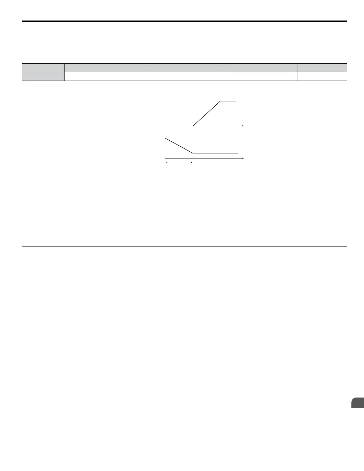 Braking starts. The current will change linearly from the setting of b2-08 to the setting of E2-03.