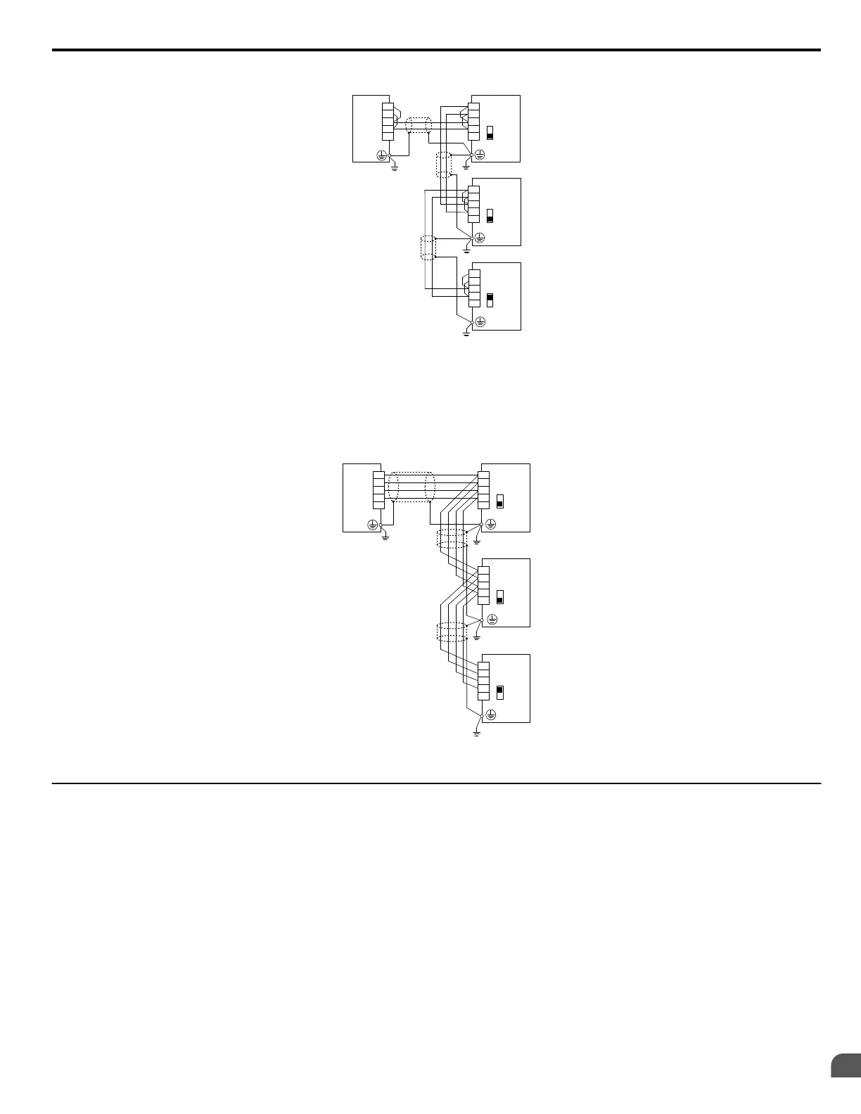 Note: 1. Turn on the DIP switch on the drive that is located at the end of the network. All other slave devices must have this DIP switch set to