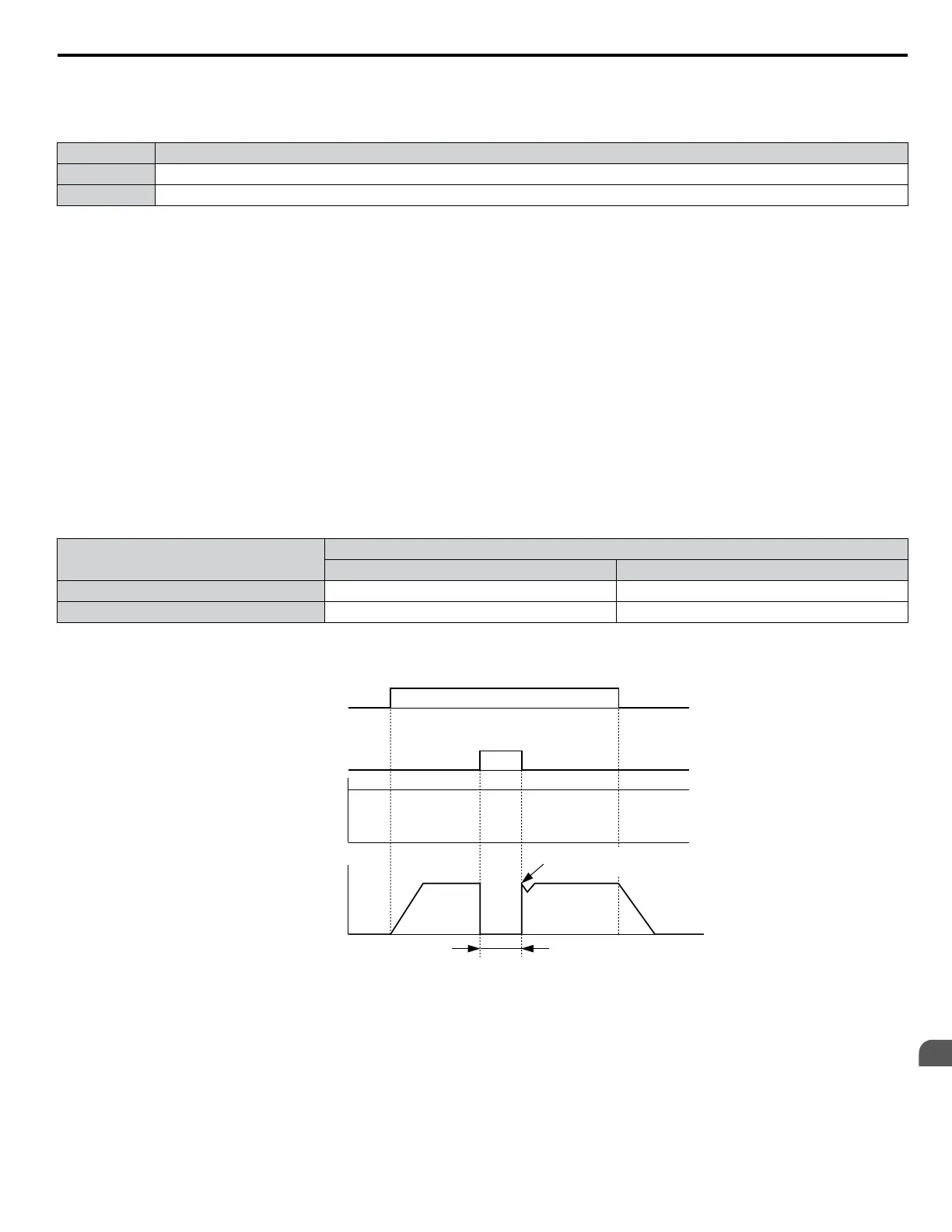 the drive output is cut off by a baseblock command triggered by one of the input terminals. Failure to comply will result in a slipping load