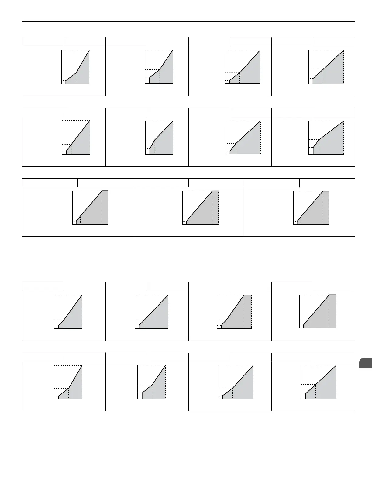voltage values in the following graphs are specific to 200 V class drives. Double the values for 400 V class drives. Multiply
