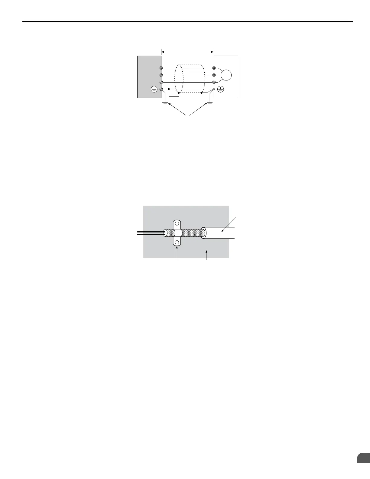 Keep wiring as short as possible. Ground the shield on both the drive side and the motor side.
