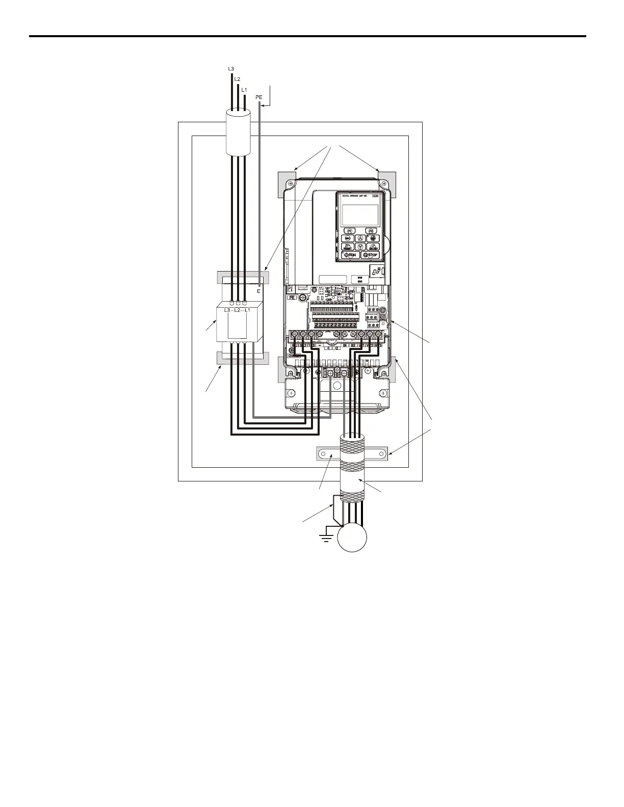Figure C.5 EMC Filter and Drive Installation for CE Compliance (Three-Phase 200 V / 400 V Class)