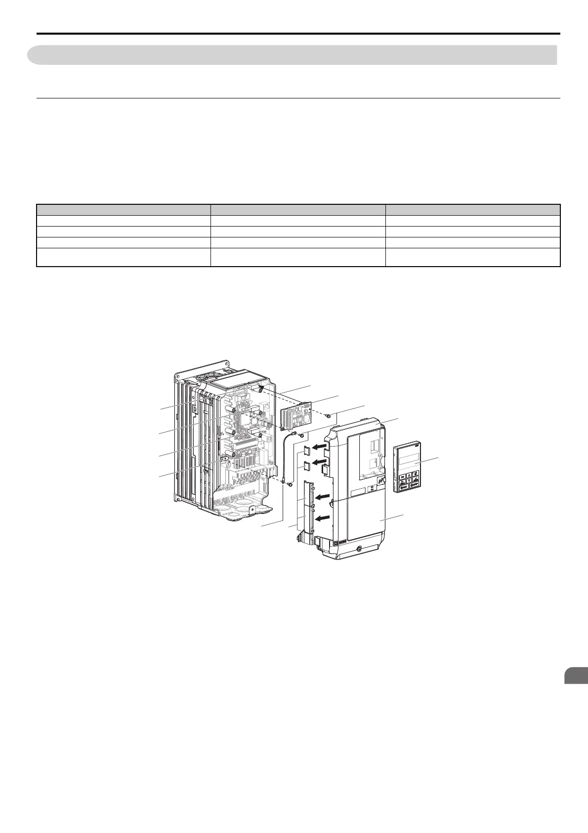 Figure 8.2 shows an exploded view of the drive with the option and related components for reference.