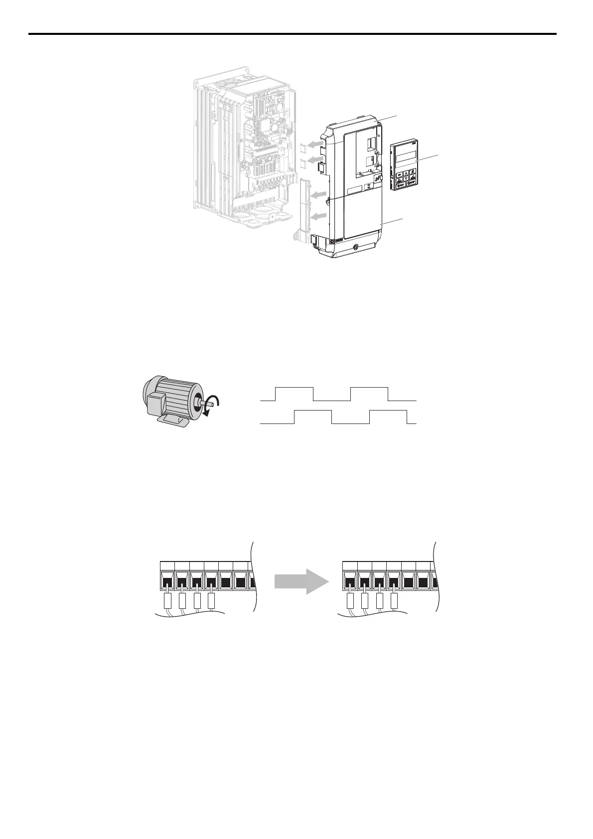 After connecting the PG encoder outputs to the option, apply power to the drive and manually rotate the motor