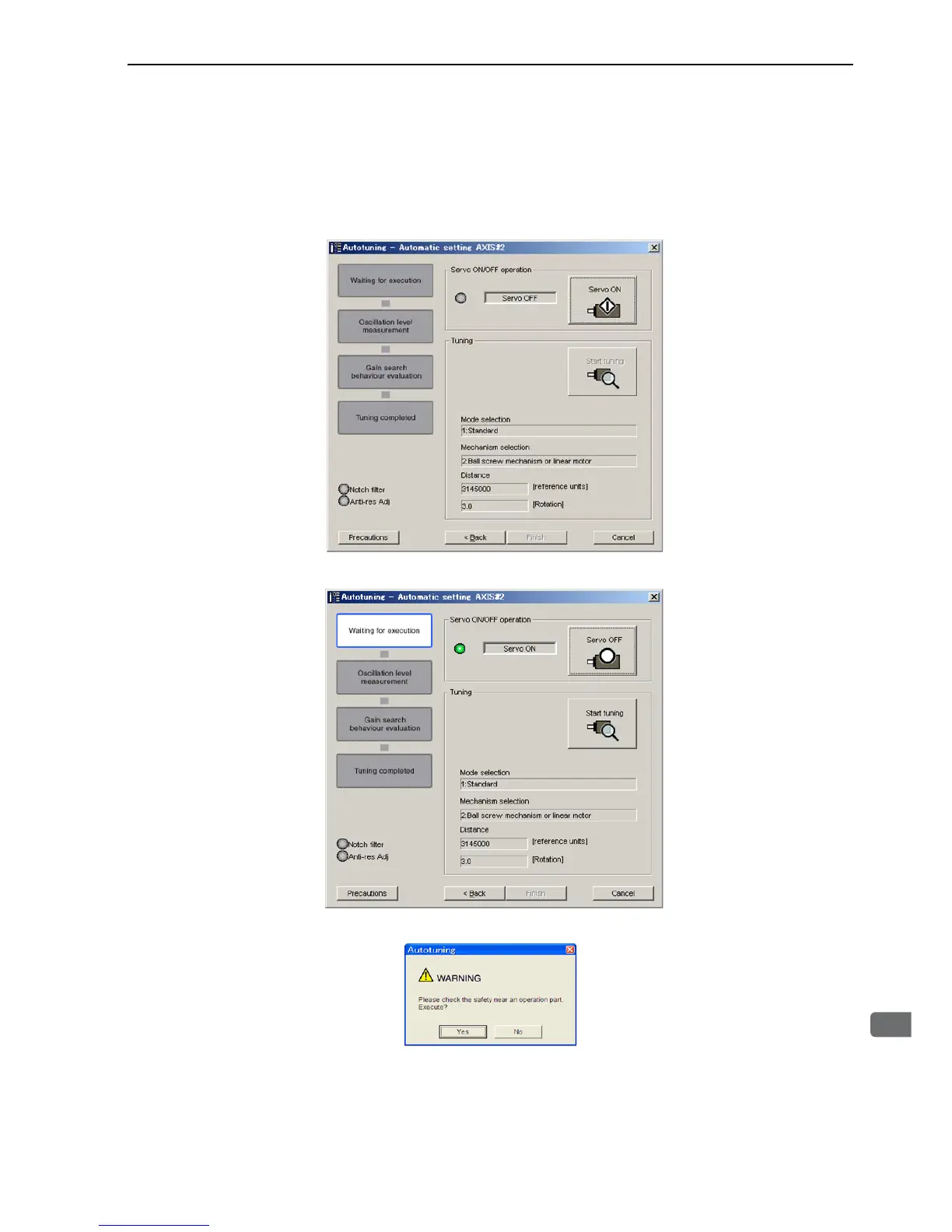 When the Start tuning using the default settings. check box is selected in the Autotuning-Setting Con-