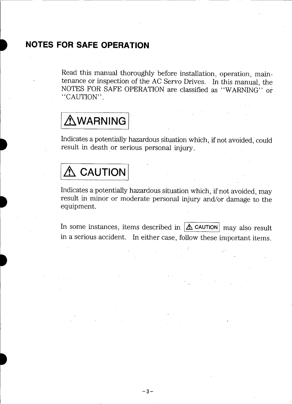 NOTES FOR SAFE OPERATION are classified as "WARNING" or