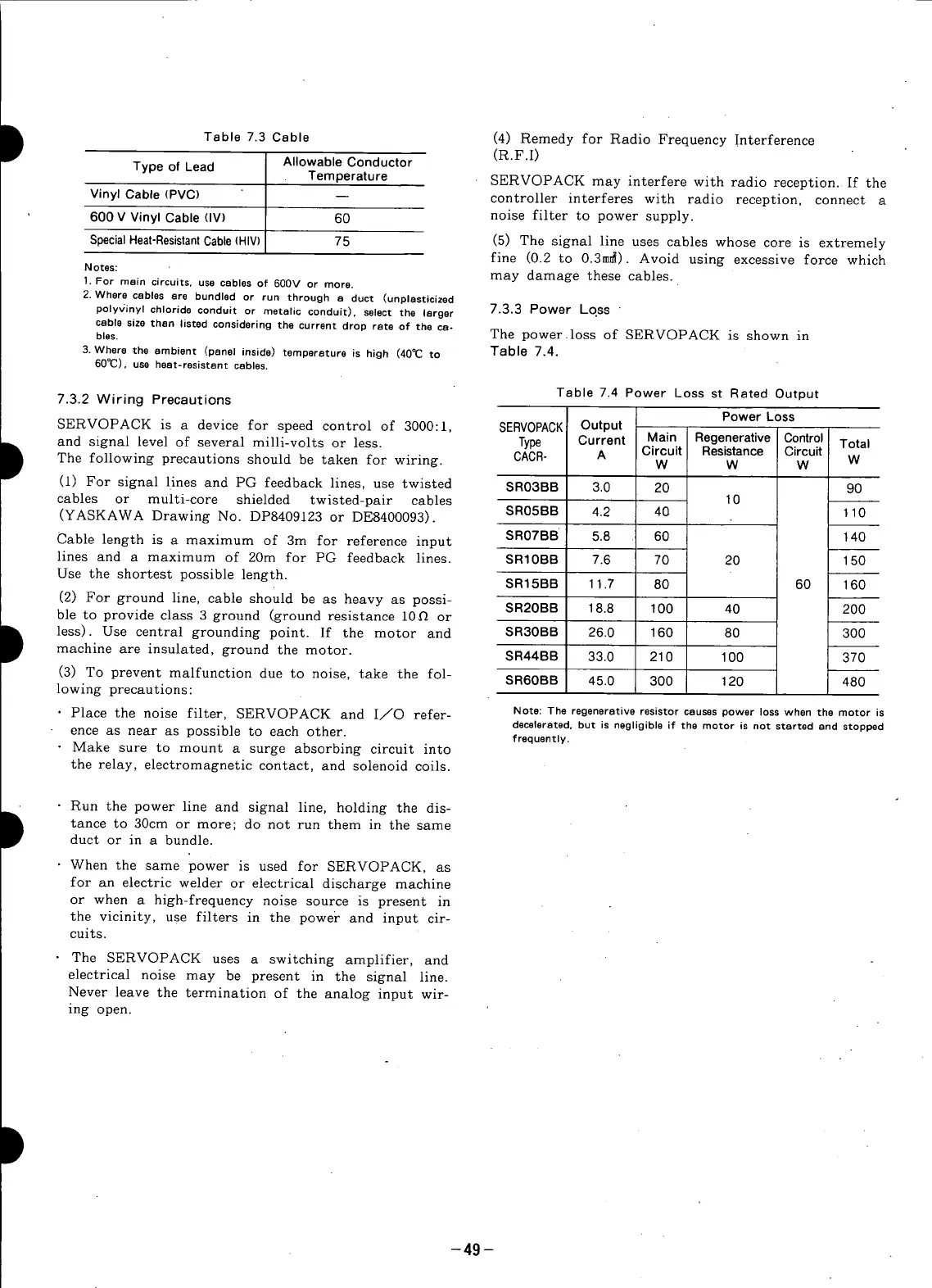 7.3.2 Wiring Precautions Table 7.4 Power Loss st Rated Output