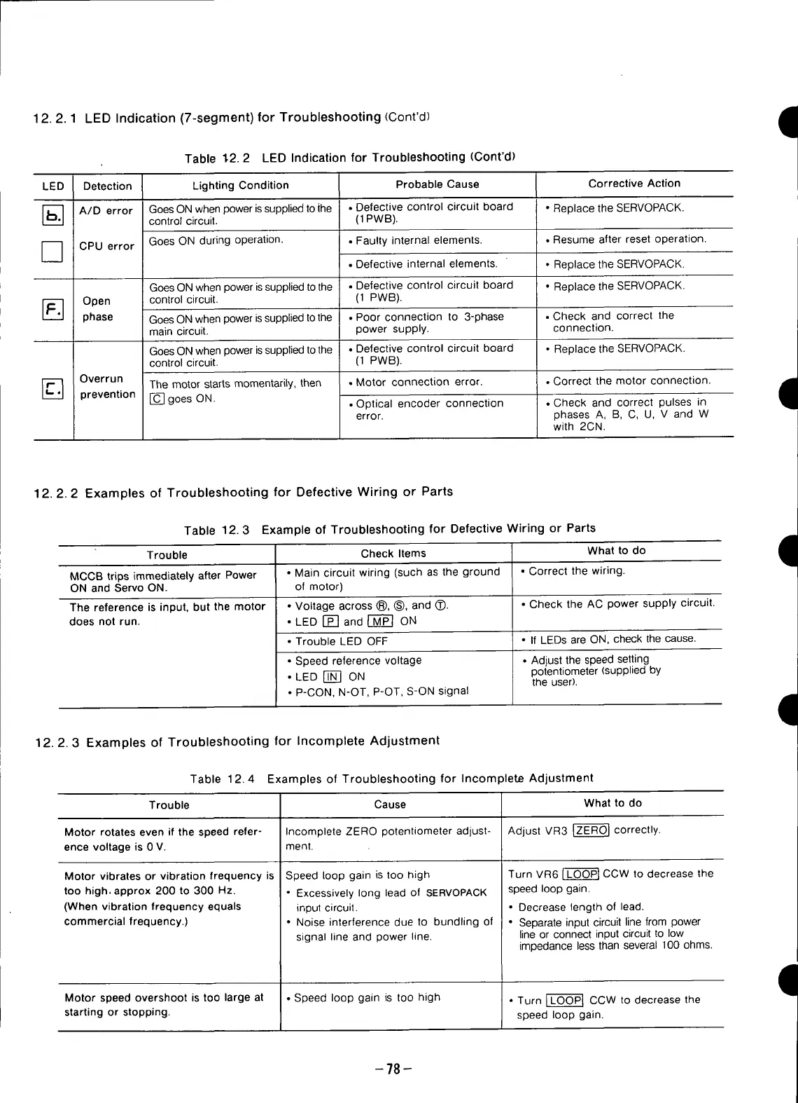 12.2.2 Examples of Troubleshooting for Defective Wiring or Parts
