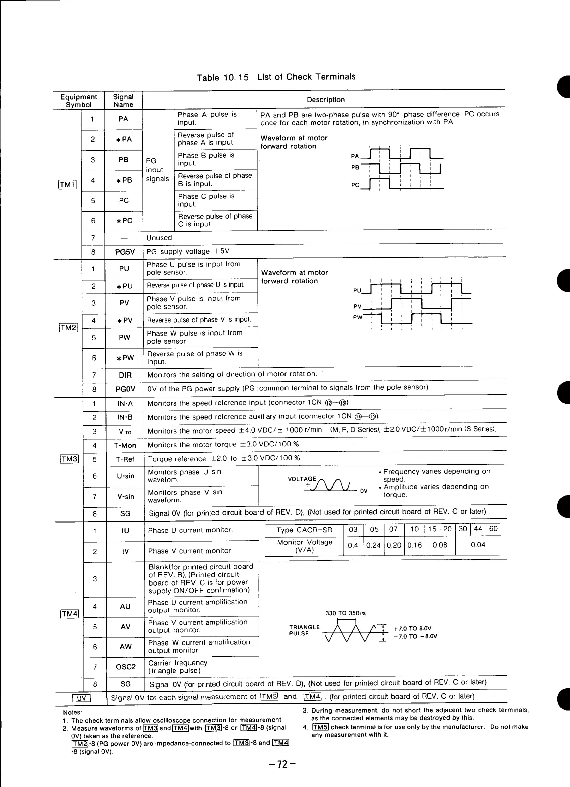 3 V TG Monitors the motor speed _+4.0 VDC/_+ 1000 r/rain. (M, F, D Series),-+-2.0VDC/± 1000 r/min (S Series).