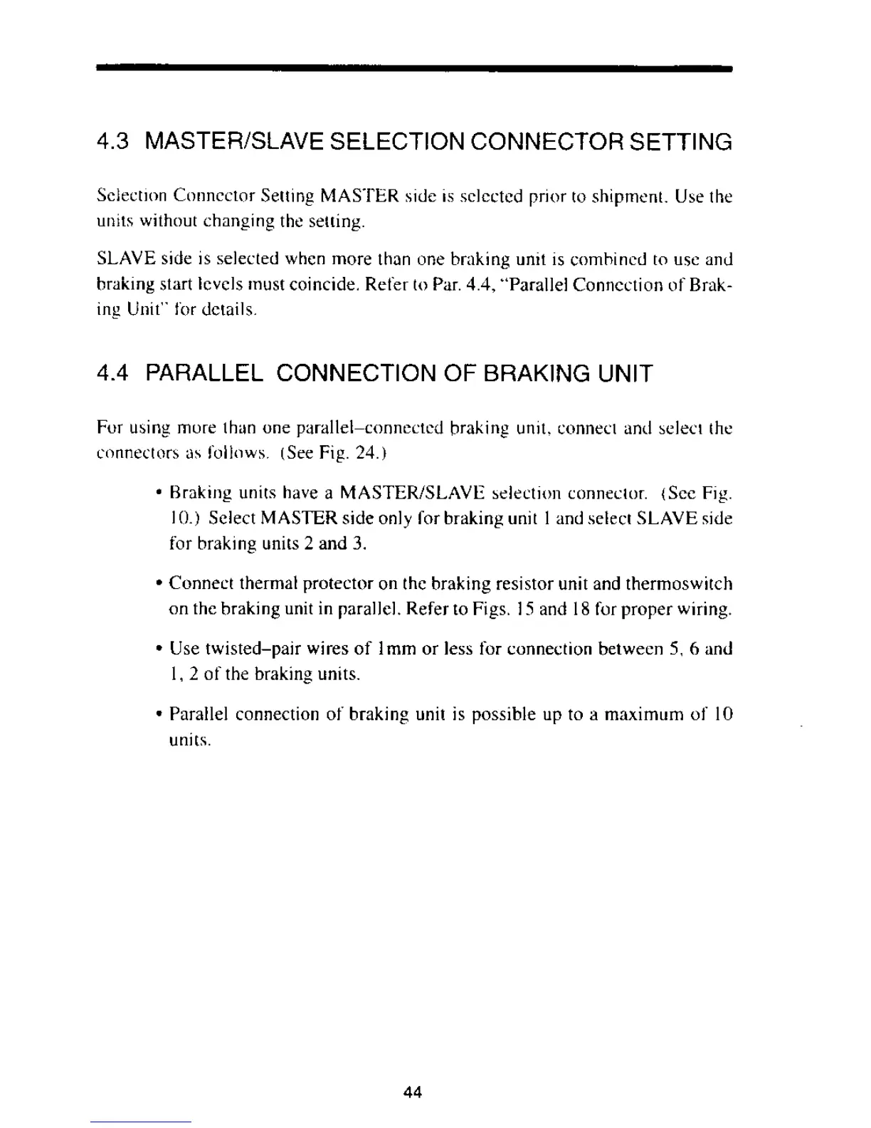 YASKAWA CDBR - 4.3 Master;Slave Selection Connector Setting; 4.4 Parallel Connection of Braking Unit