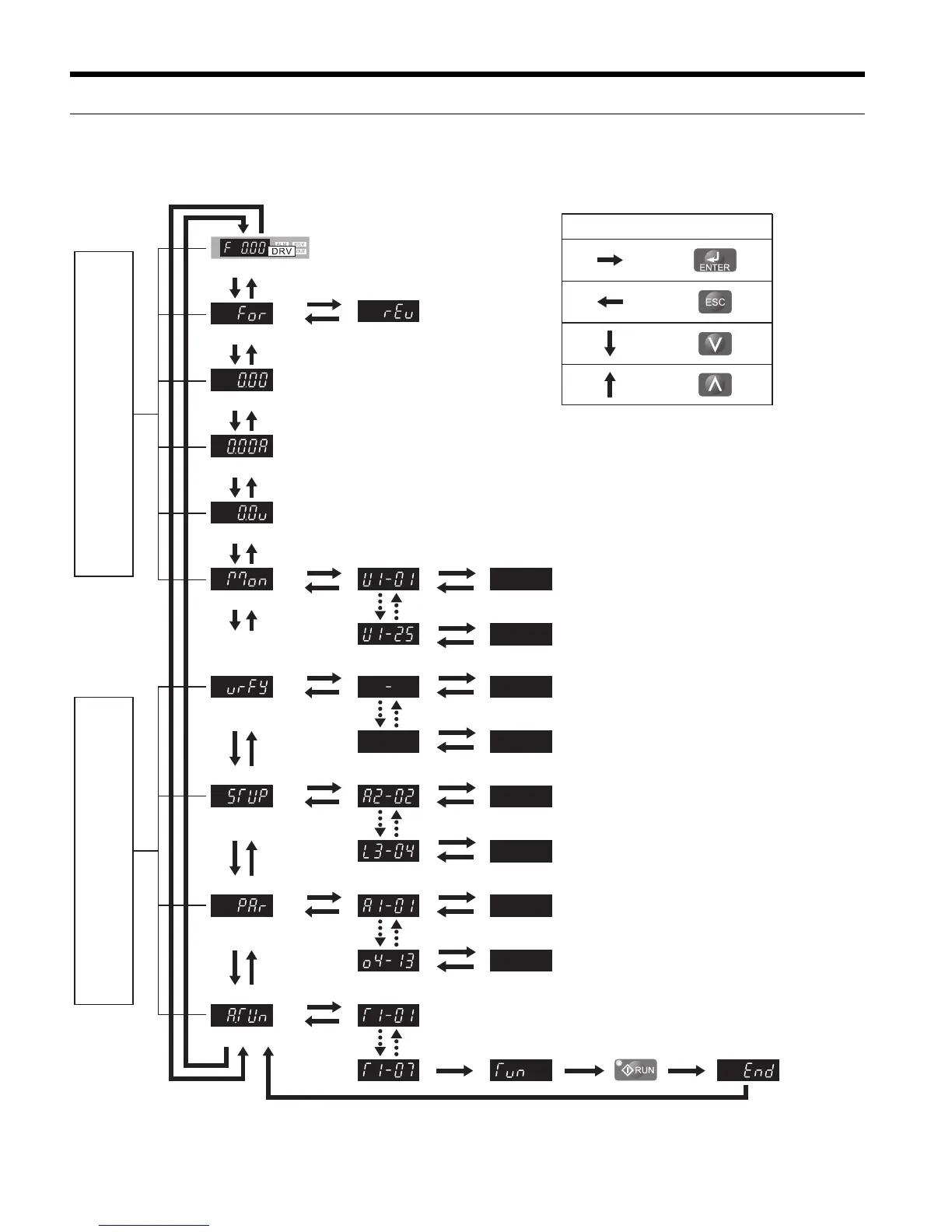 The following illustration explains the operator keypad menu structure.