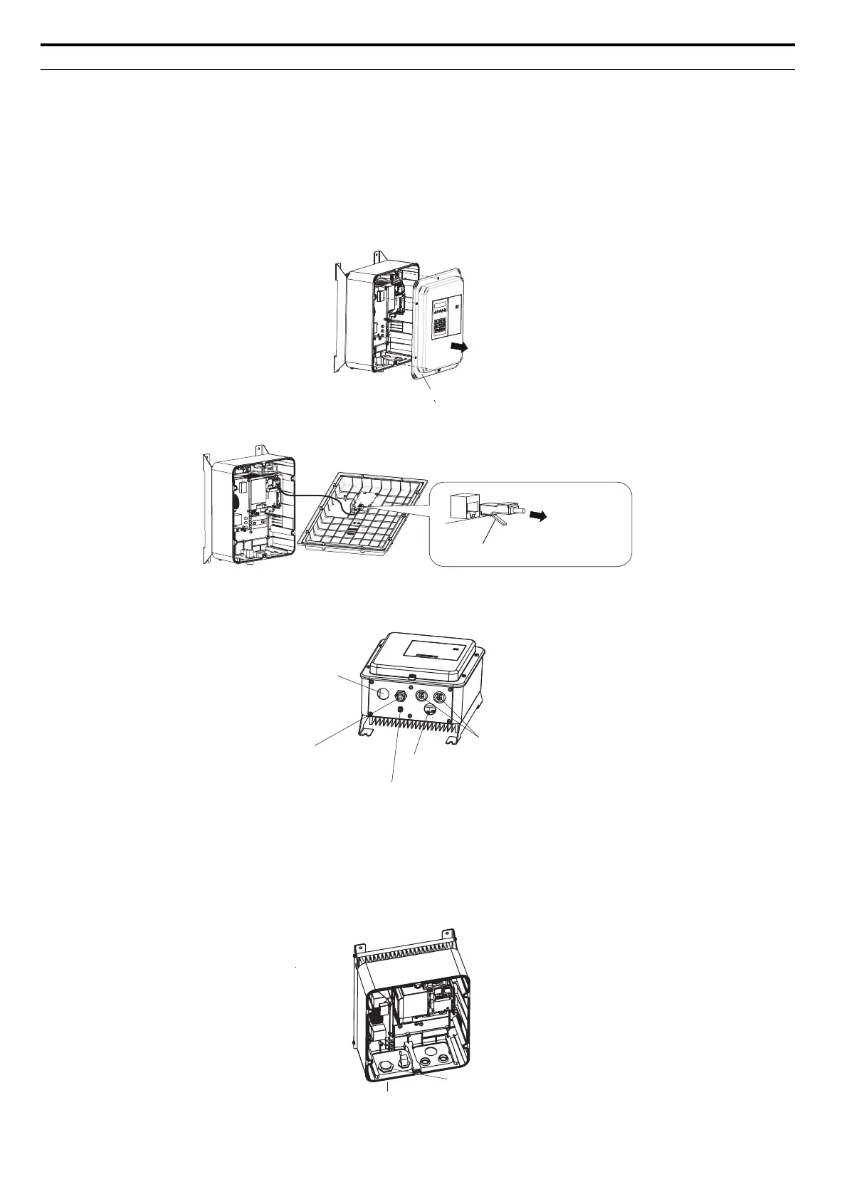 INFORMATION: Bauen Sie das Schutzgehäuse des Umrichters nicht auseinander. Das Gehäuse ist zusammen mit dem Kühlkörper als ein Teil gefertigt. Beim