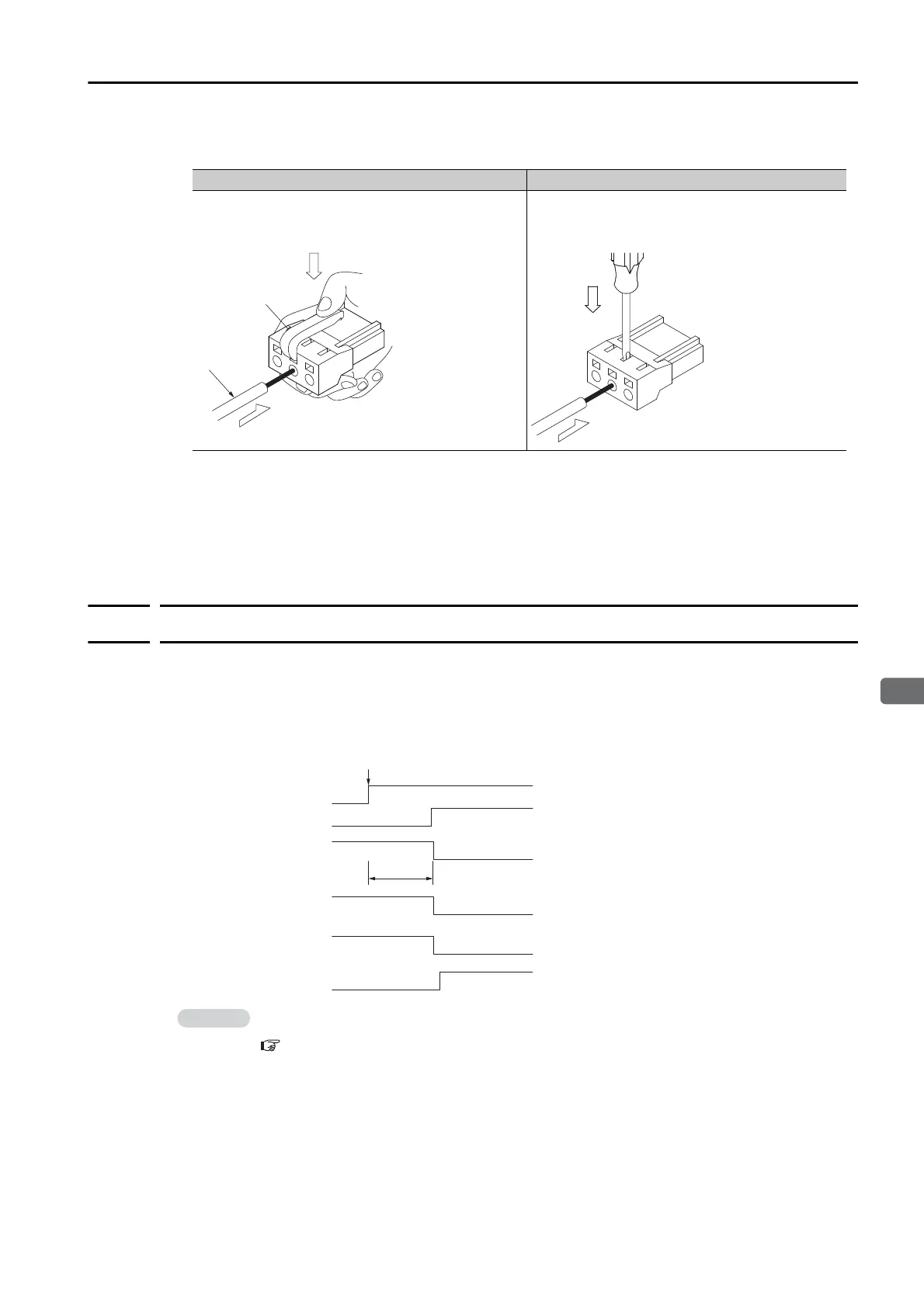 Open the wire insertion hole on the terminal connector with the tool. There are the fol-